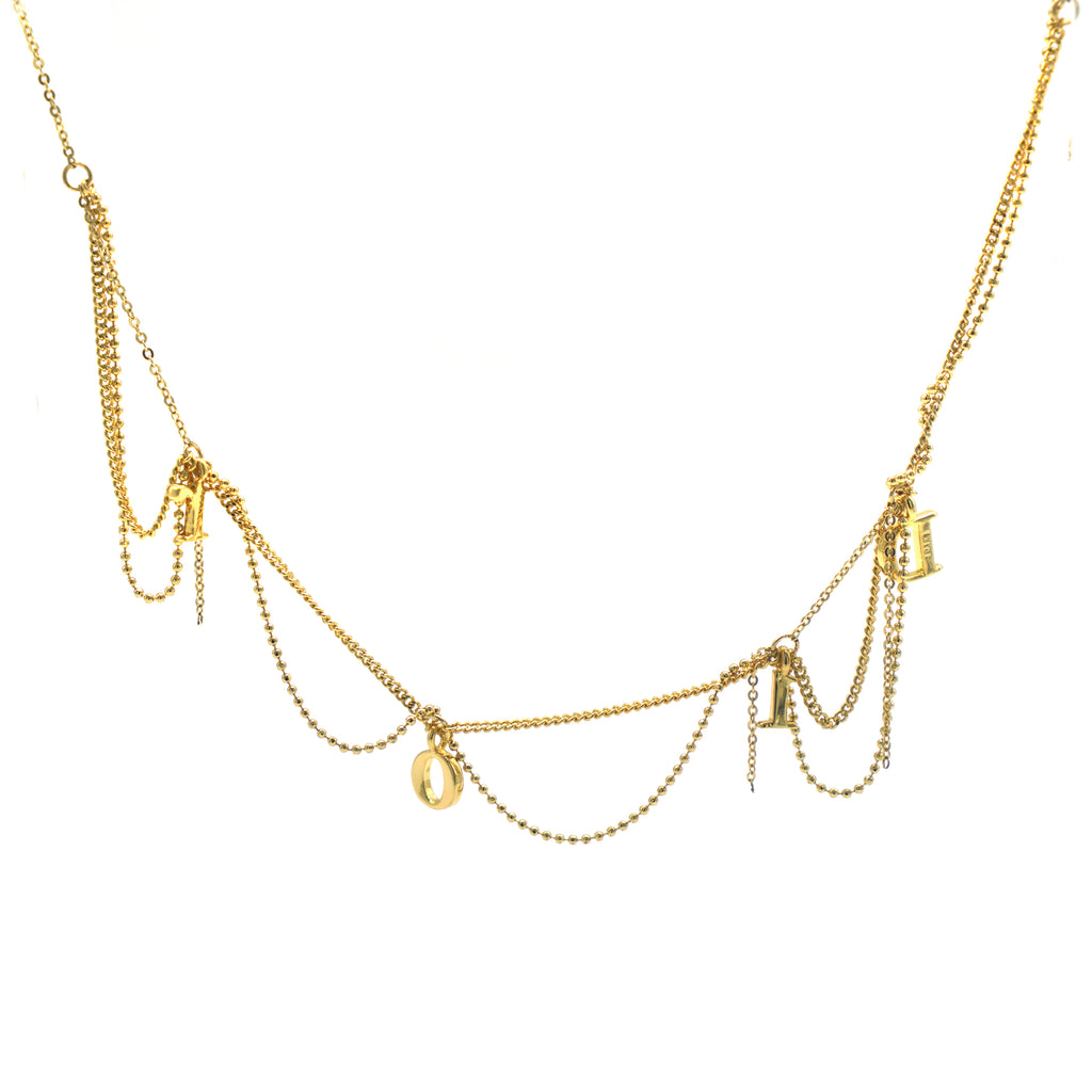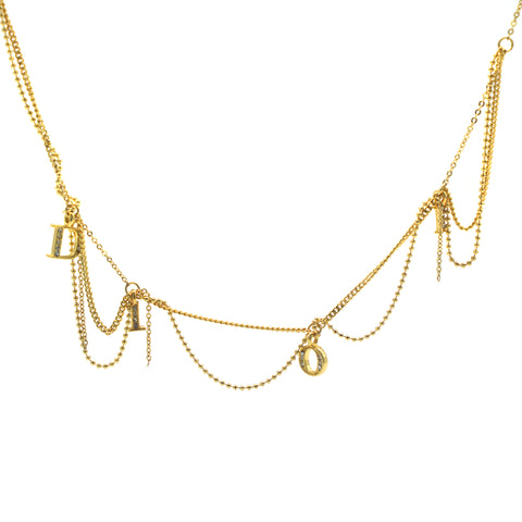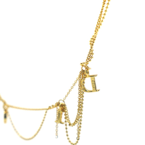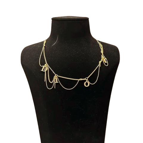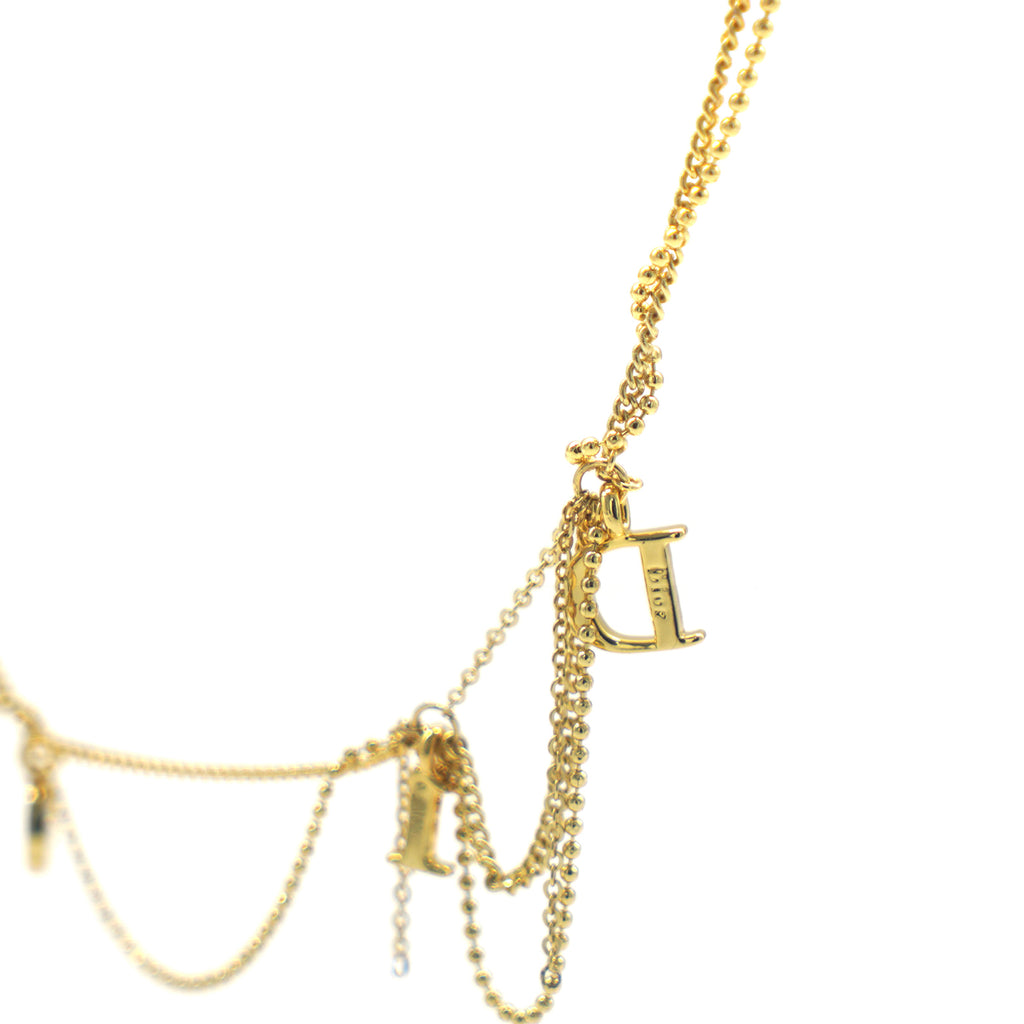 | This beautiful layered gold-tone necklace is adorned by D.I.O.R encrusted crystals charm, with few adjustment holes, you have options to style it. |