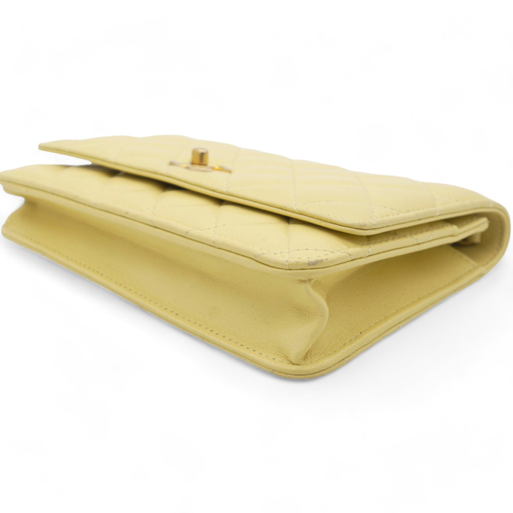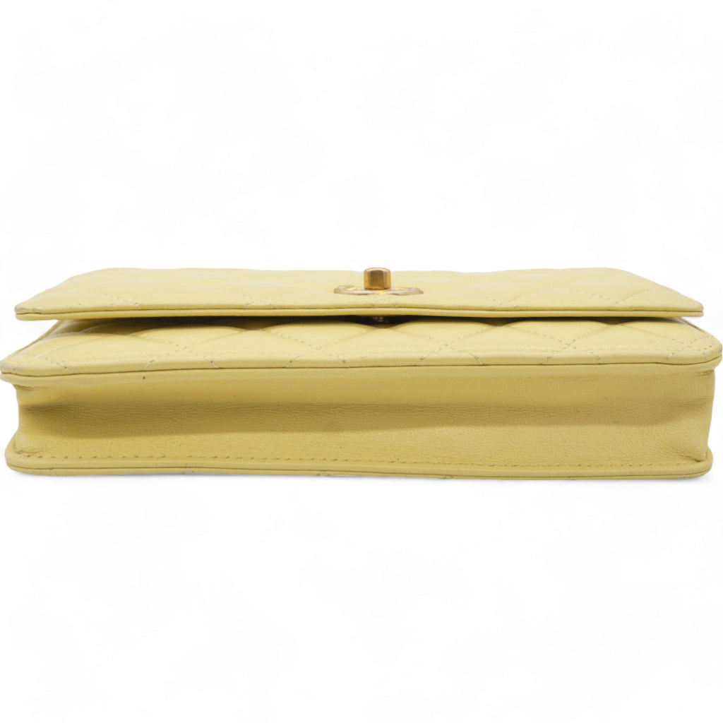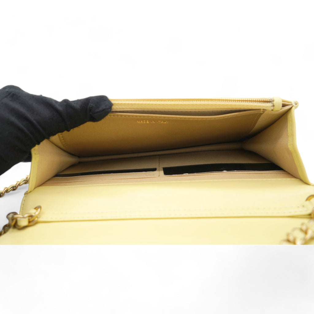 Caviar Crush Quilted Mini Wallet On Chain WOC Yellow
