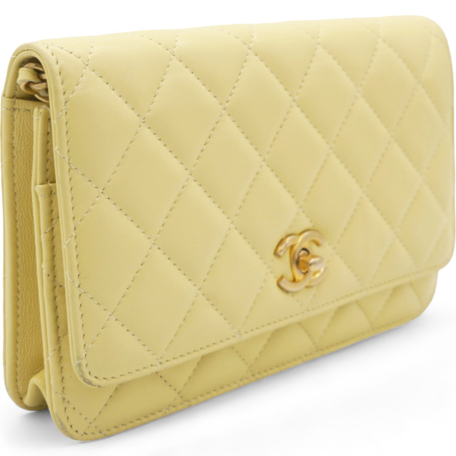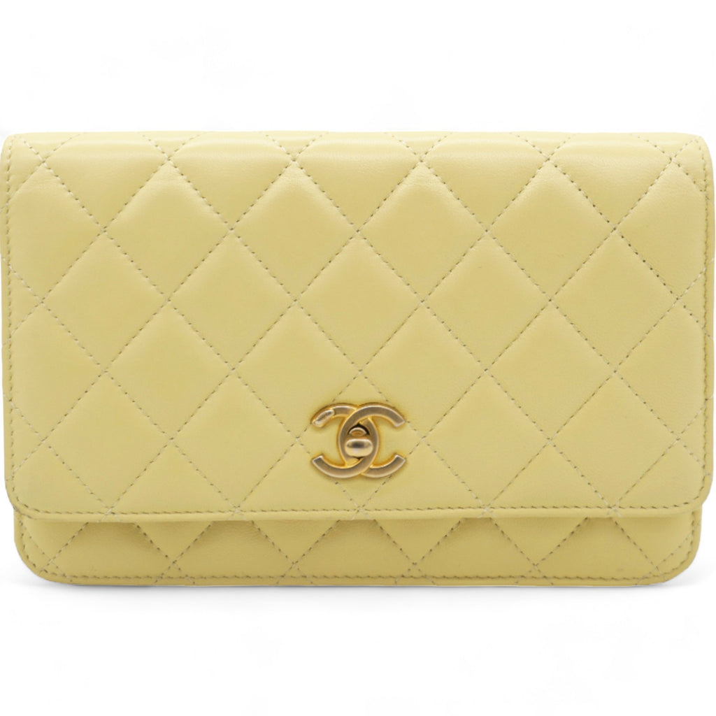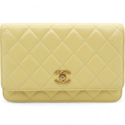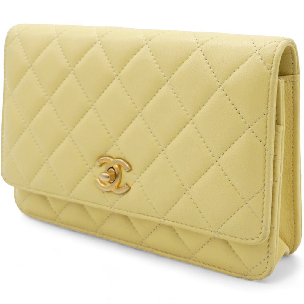 Caviar Crush Quilted Mini Wallet On Chain WOC Yellow
