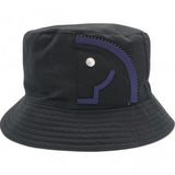 | Bucket hat in water resistant technical gabardine, horse head-shaped pocket with patches in Swift calfskin on the side. Lining in contrasting linen. Brushed palladium plated Clou de Selle detail on the side. |
