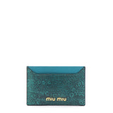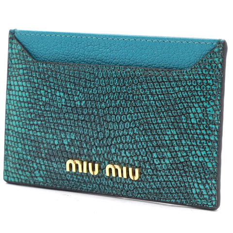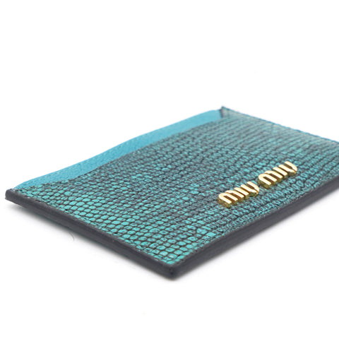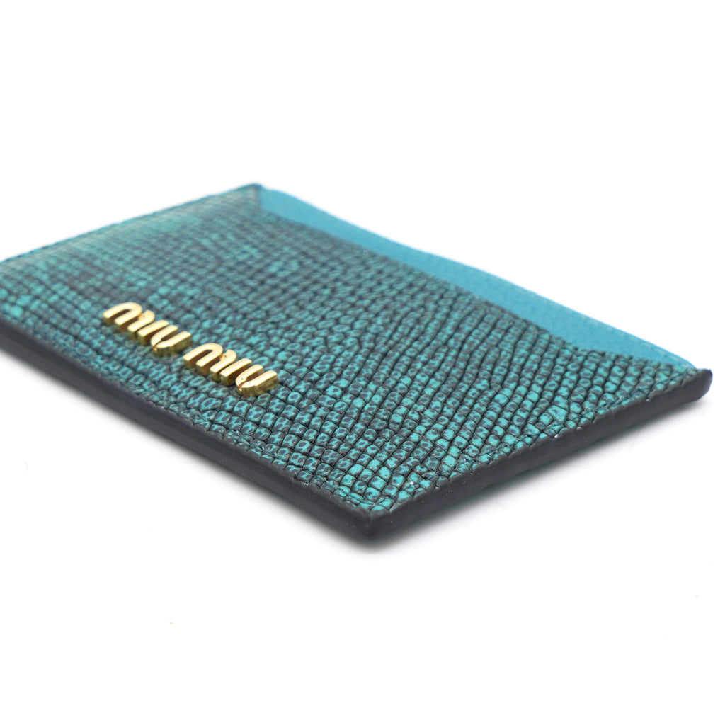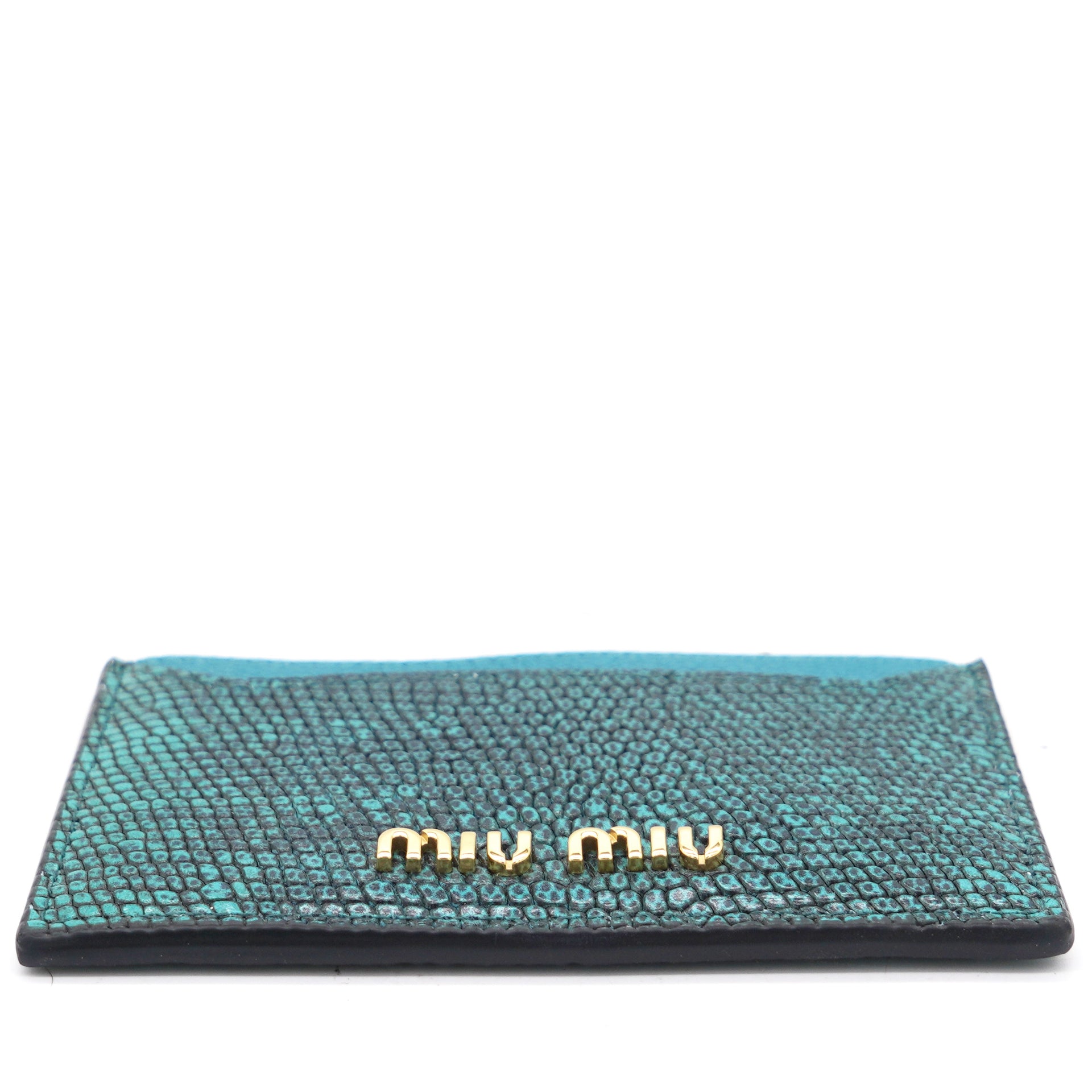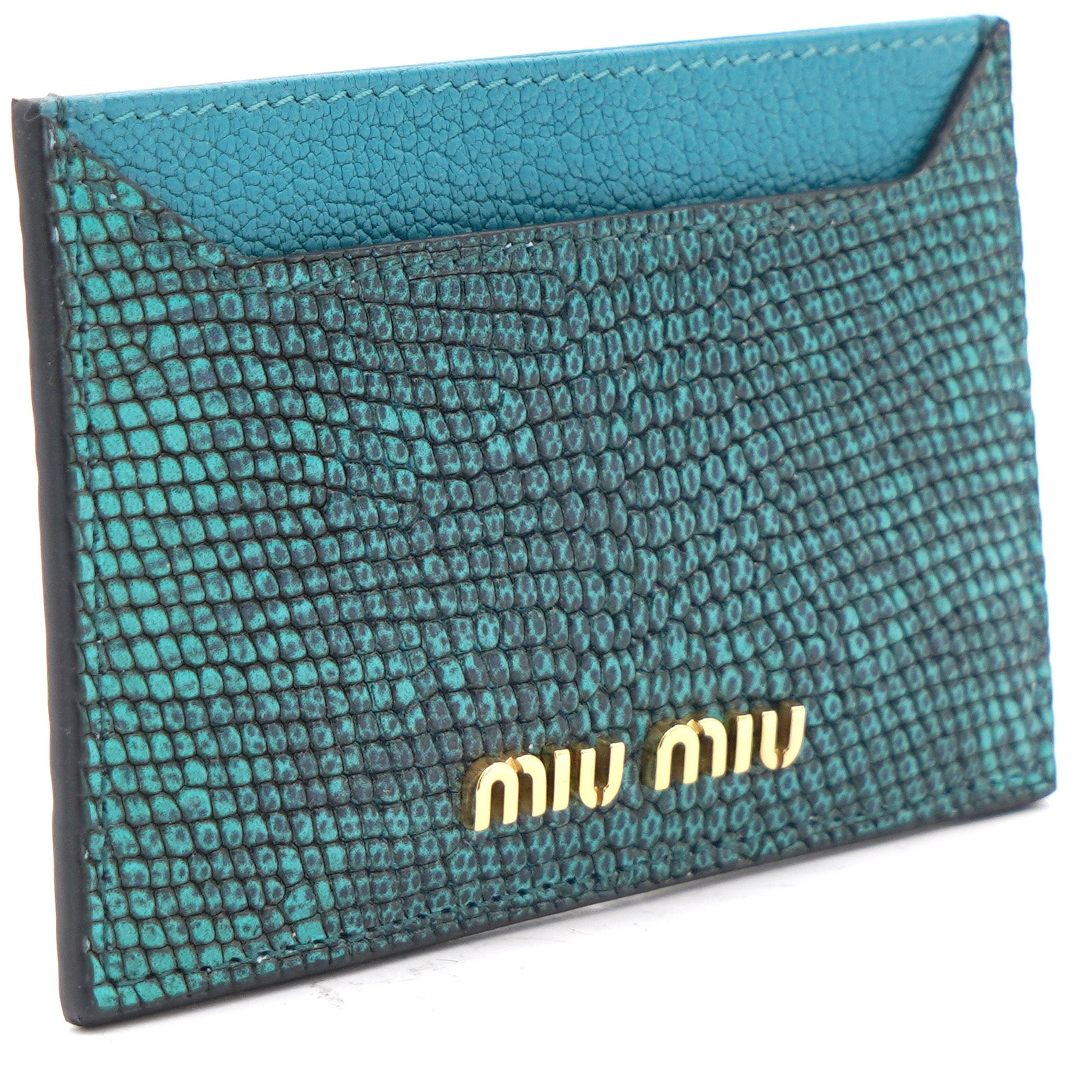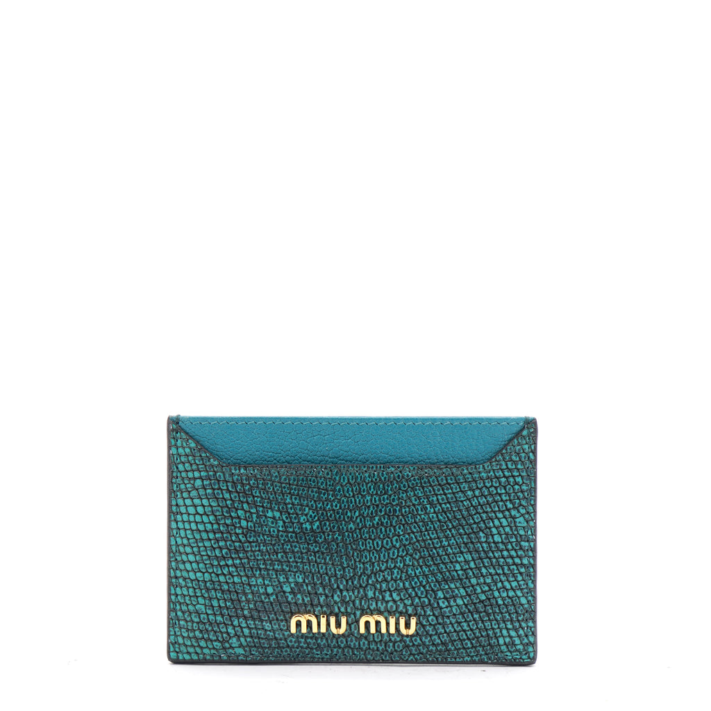 | Conveniently designed for everyday use, this cardholder is from Miu Miu. Crafted from exotic leather, the piece is styled with the brand logo on the front. The interior is lined with nylon. |