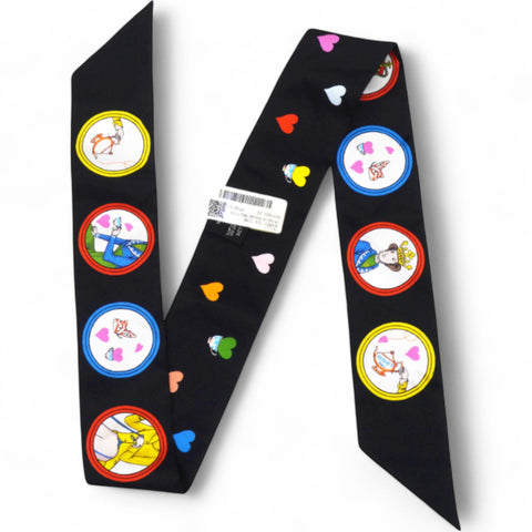 | The exceptional quality and charming beauty of this Hermes scarf make it an iconic fashion accessory. This is a 100% silk scarf with a very elaborate design of a king and queen having tea time on black background. |