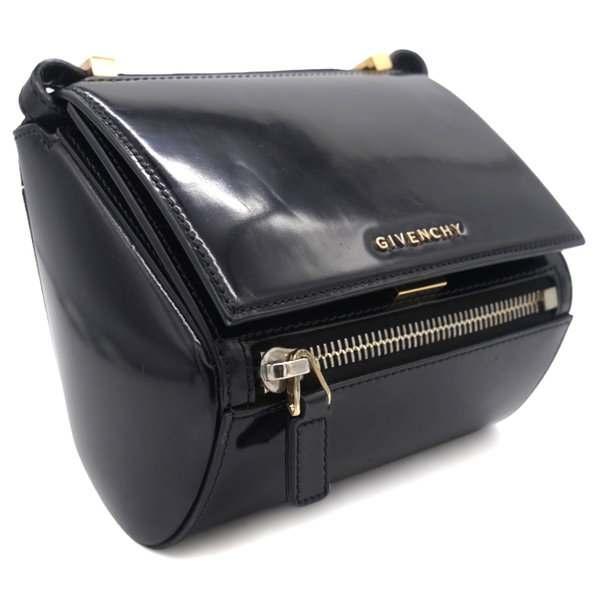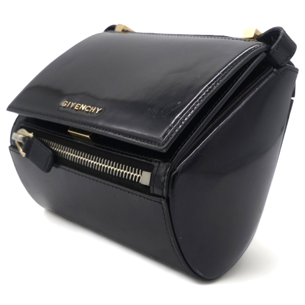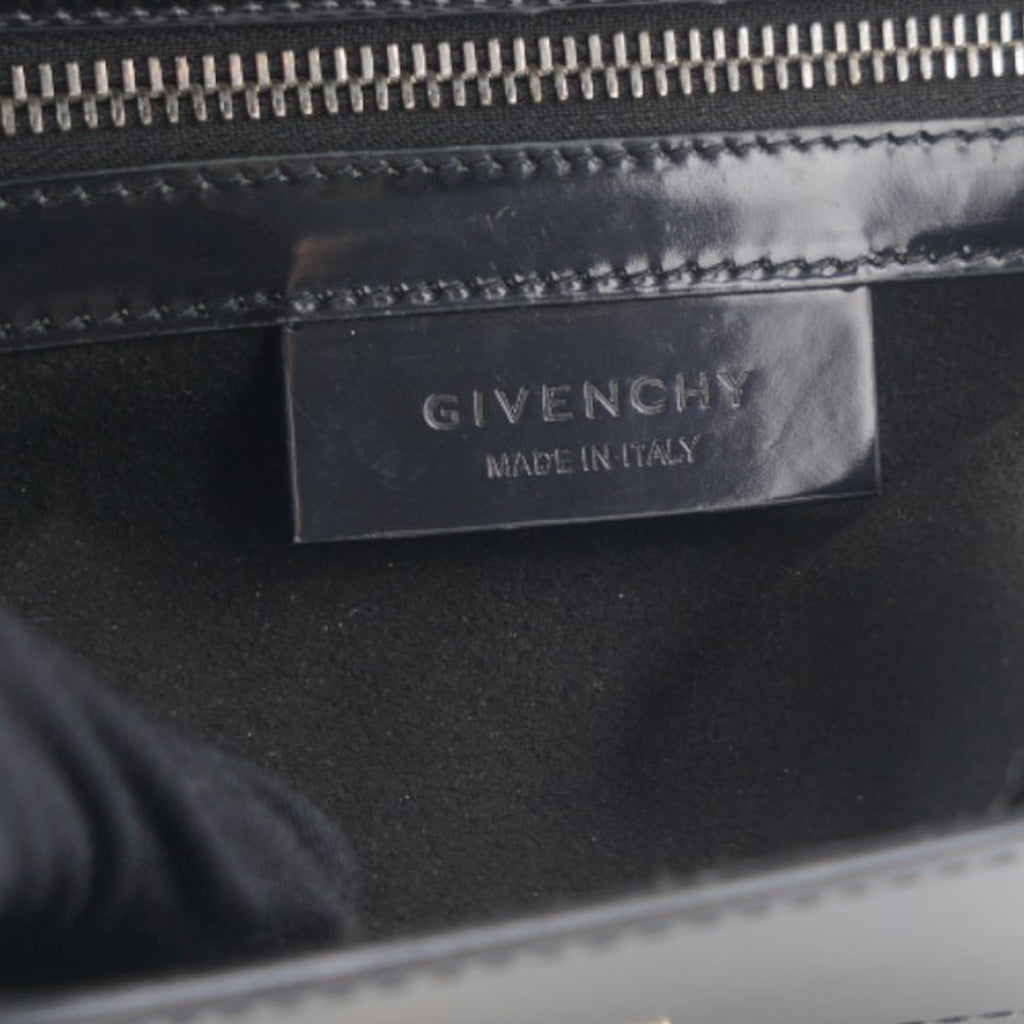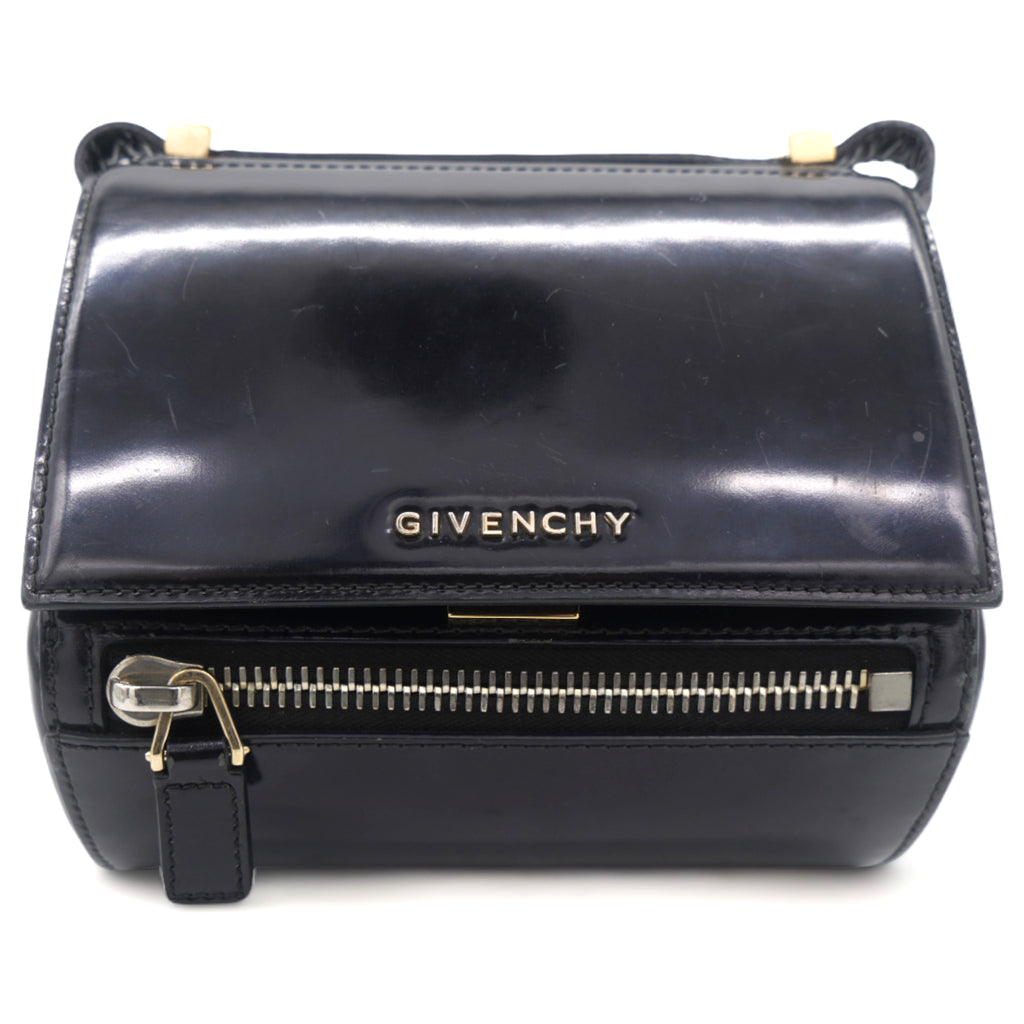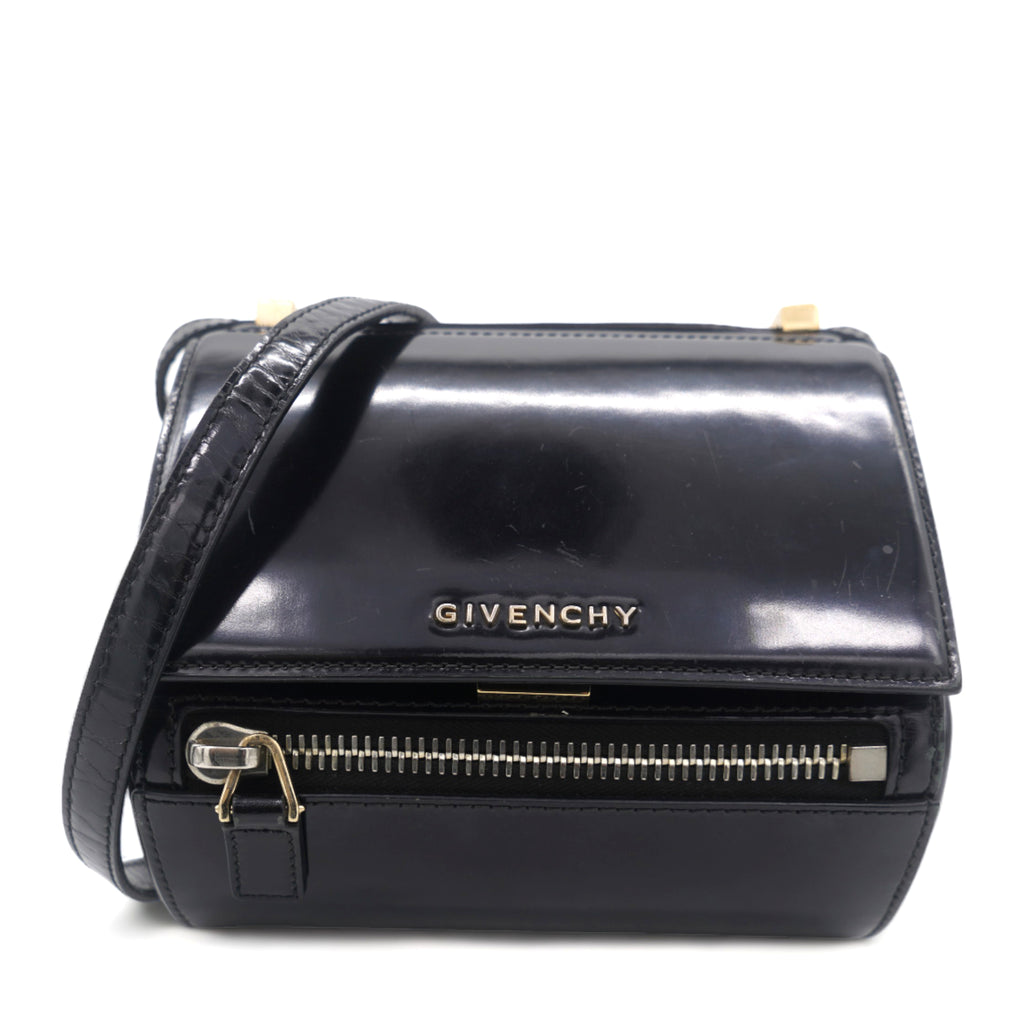 | Instantly recognizable, the Givenchy Pandora bag creates an angular, recognizable silhouette that all the "it" girls are loving. This version is the more structured "Box" version, crafted out of beautiful black smooth leather and features a long adjustable crossbody strap that can also be doubled and worn on your shoulder. |