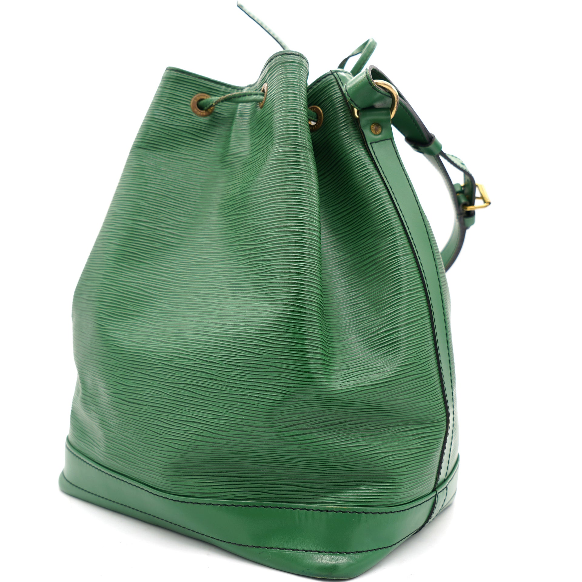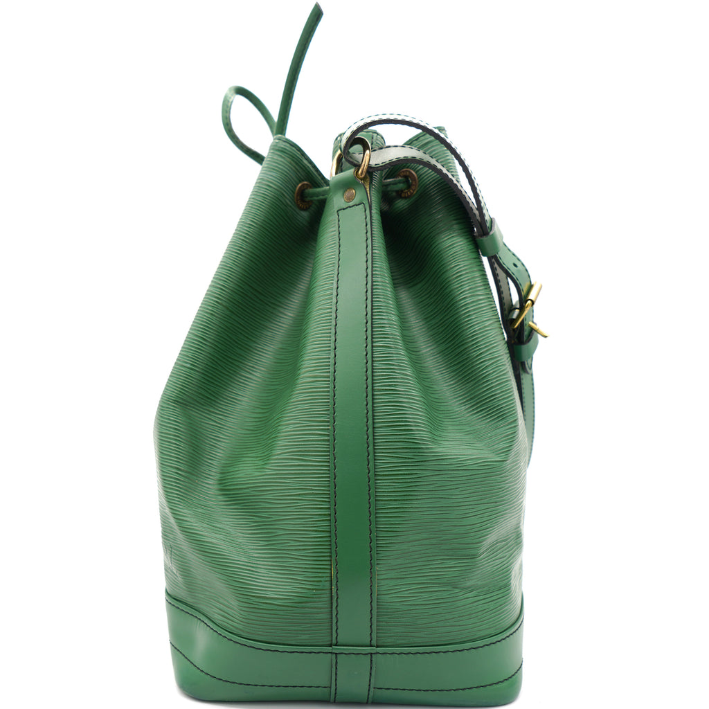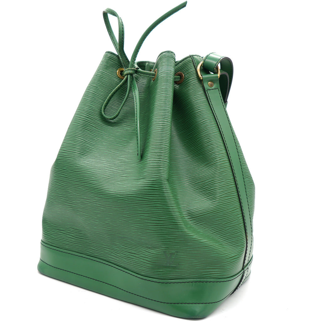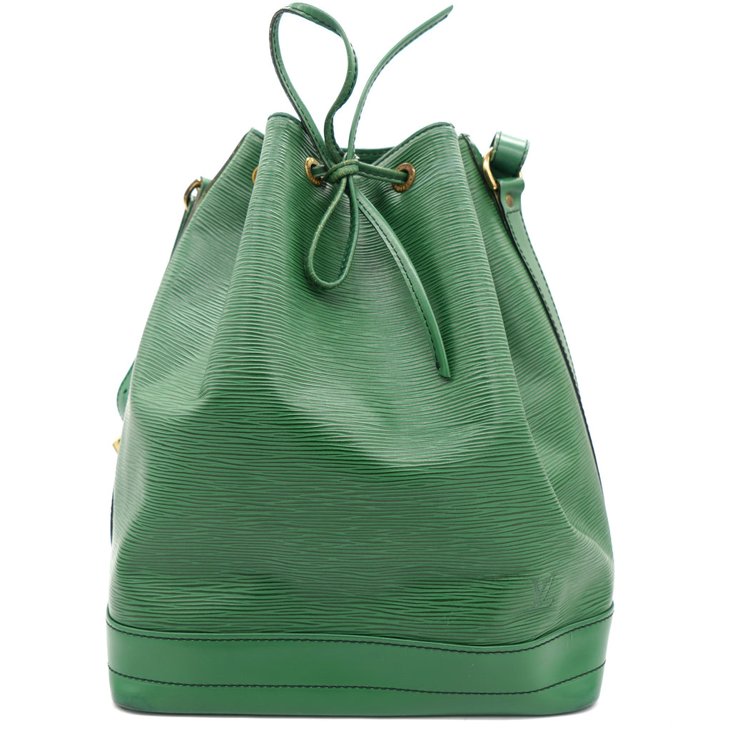 | Created in 1995 by Louis Vuitton, the iconic Noe now serves as a stylish daytime handbag. Crafted from green epi leather, the bag exudes just the right amount of sophistication. It has a single adjustable strap with gold-tone buckles, a drawstring fastening and an Alcantara-lined interior. This piece is definitely an ideal buy! |