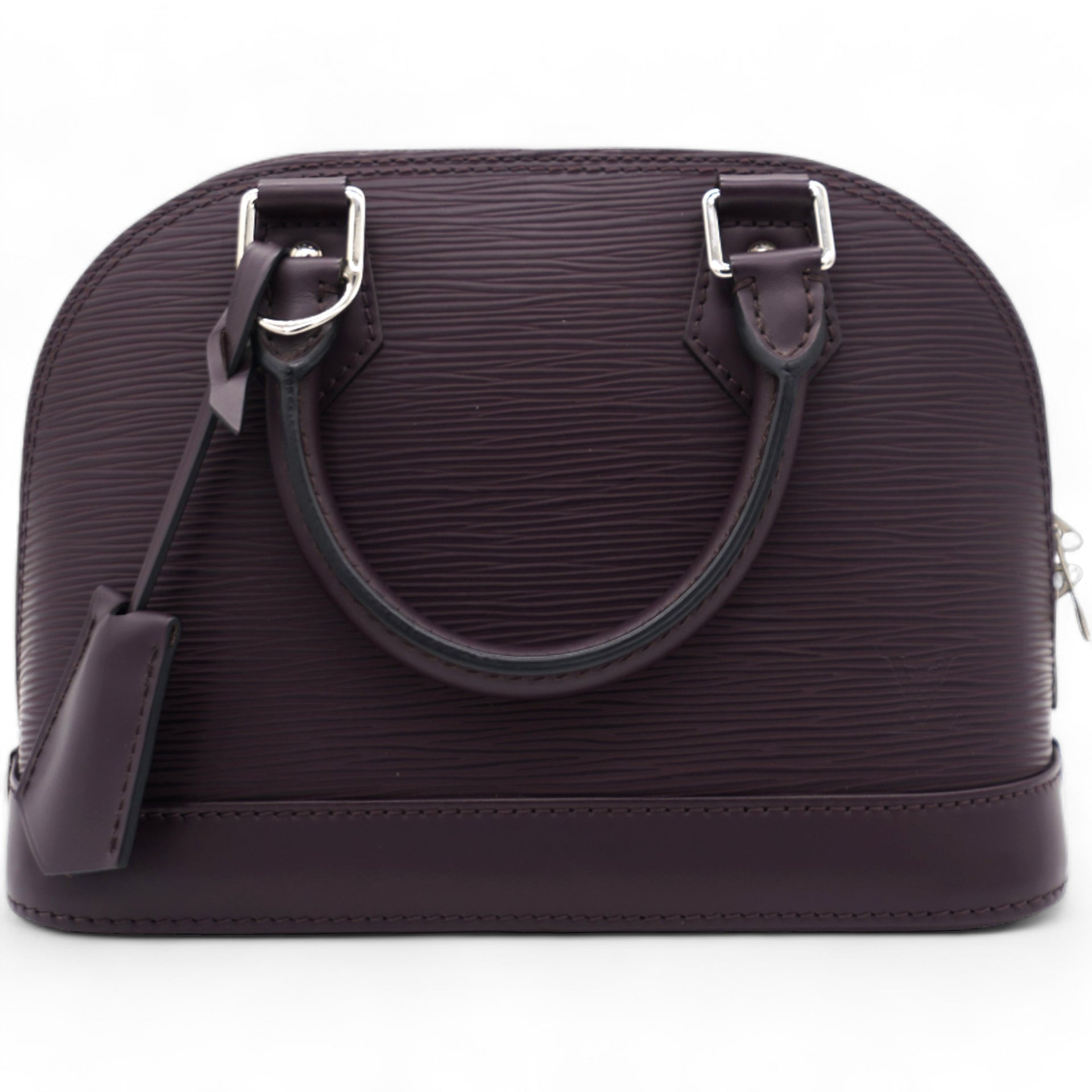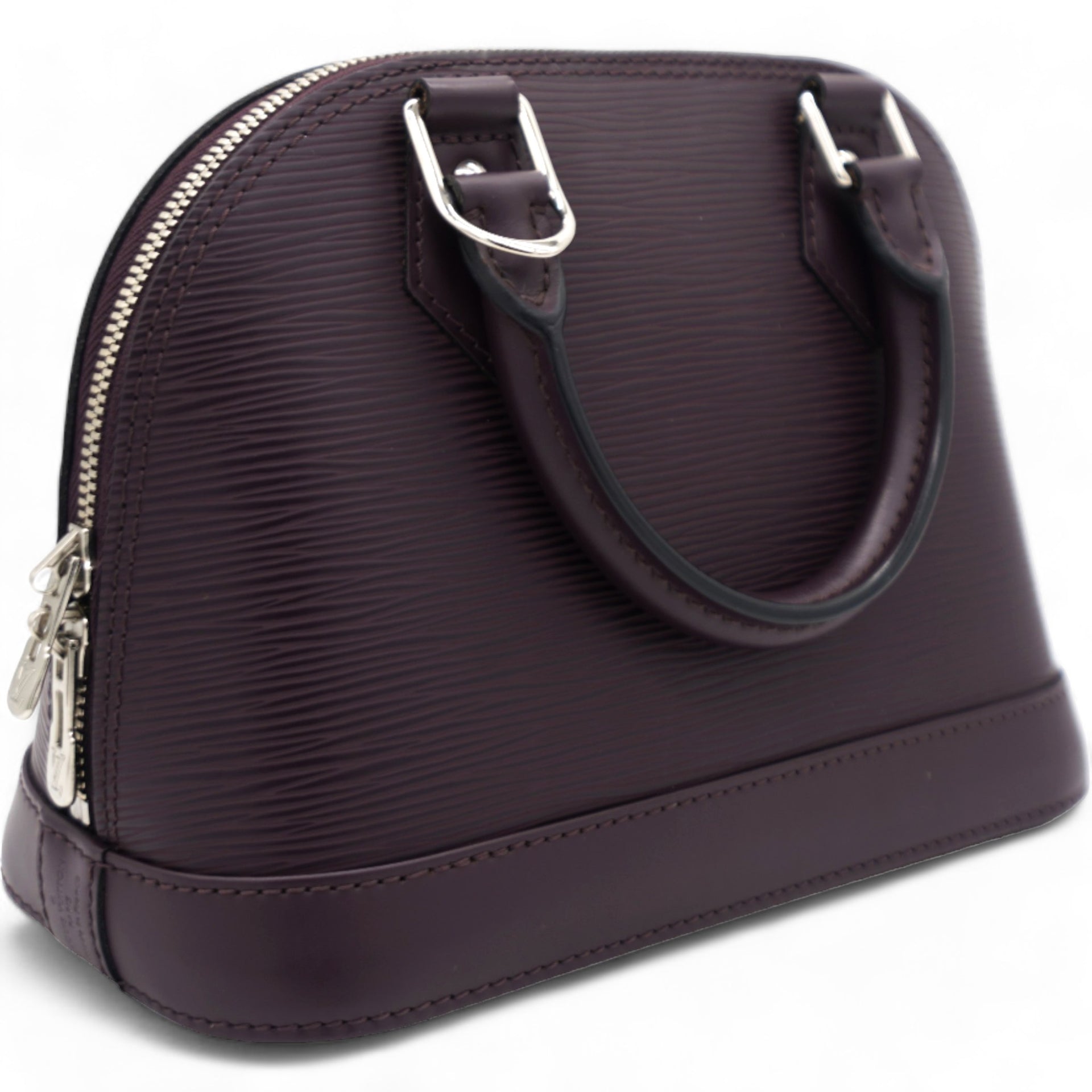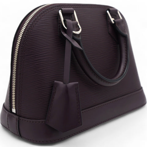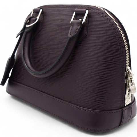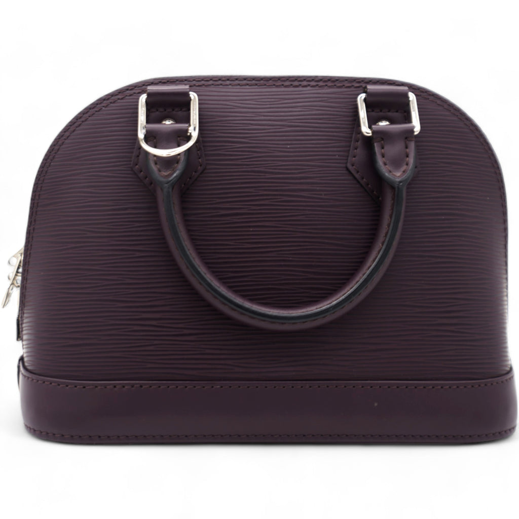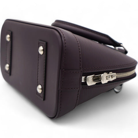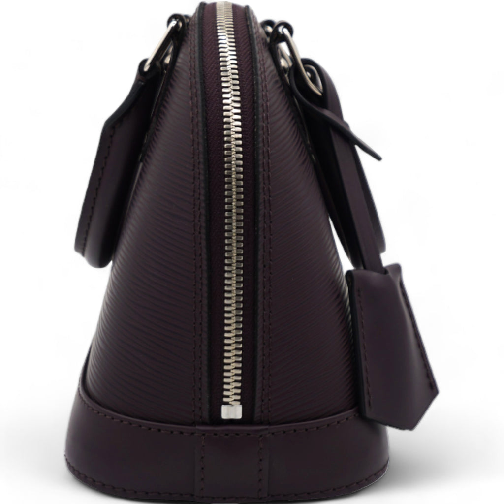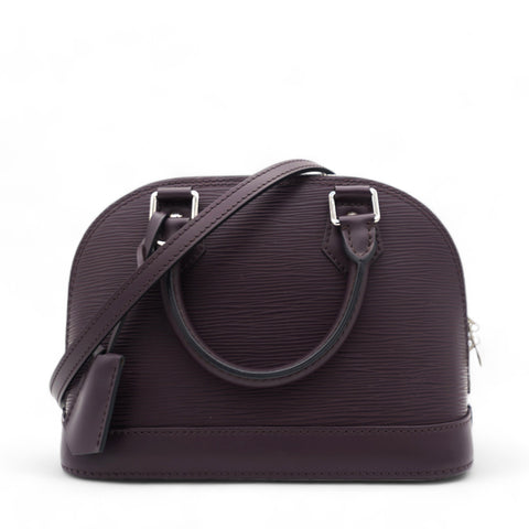 This classic bag in the mini version features a long detachable leather cross body strap and matching rolled leather top handles with polished silver hardware. The structured zippered top opens to a matching alcantara fabric interior with a patch pocket. This is a timeless piece for your collection with a distinctive look, for day or evening, from Louis Vuitton!