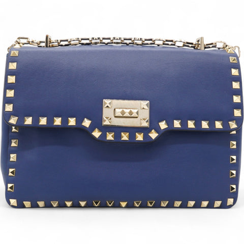 Garavani Rockstud Overlay Flap Shoulder Bag Blue Delft