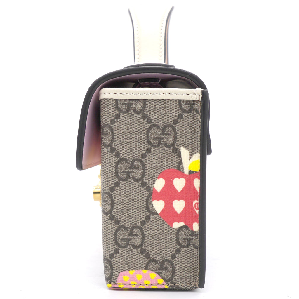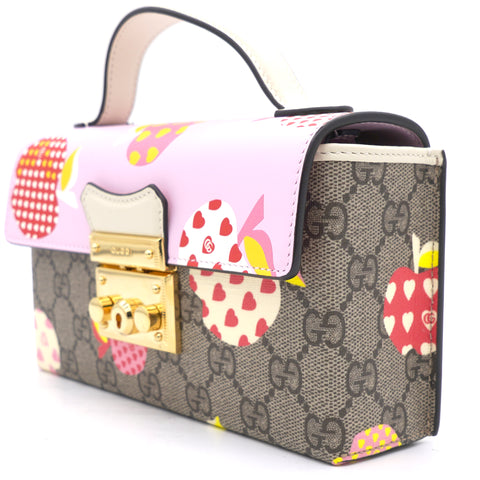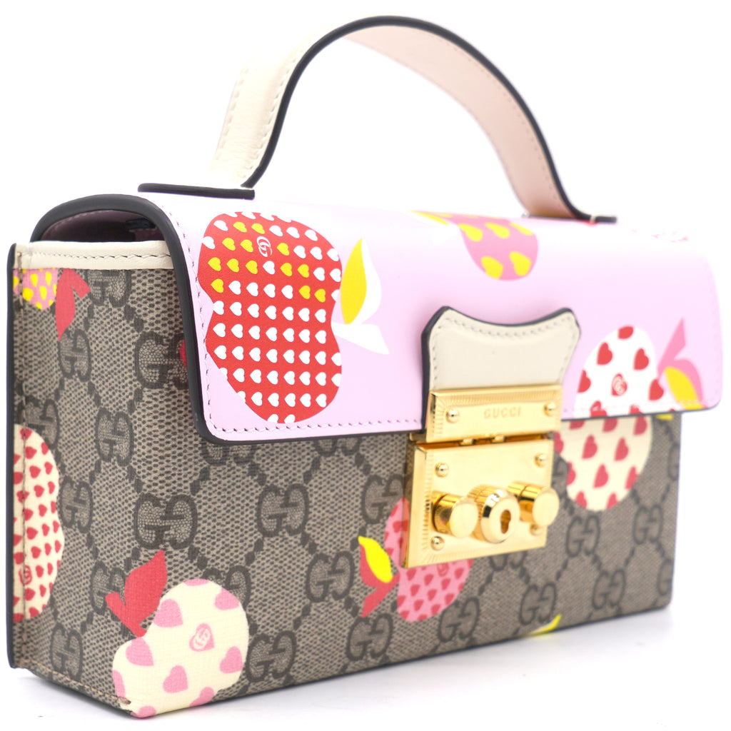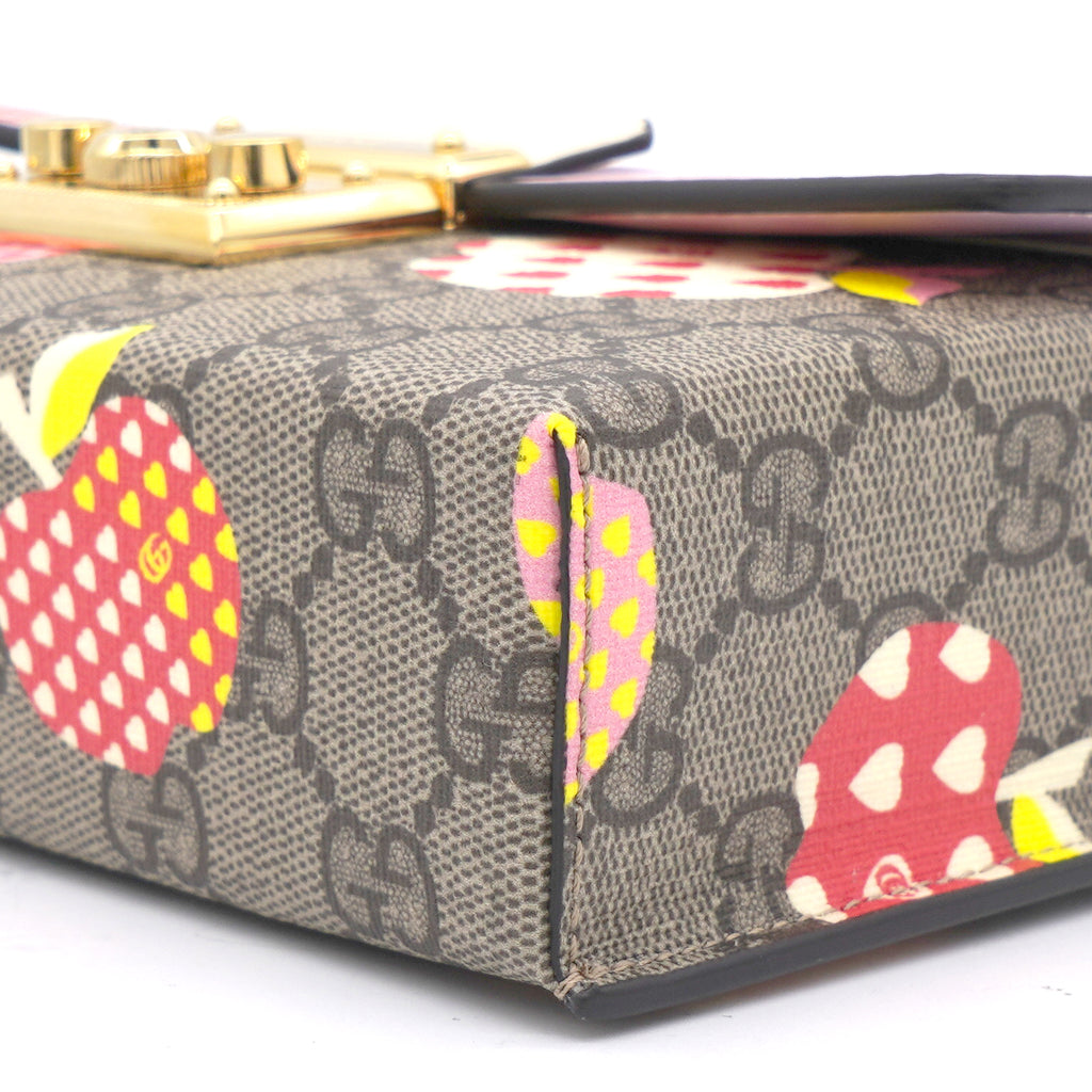| This stylish shoulder bag is crafted of brown on beige Gucci GG monogram coated canvas. The bag features gold hardware, a smooth pink leather flap and an optional leather shoulder strap. The flap opens to a beige microfiber interior with leather card slots. |