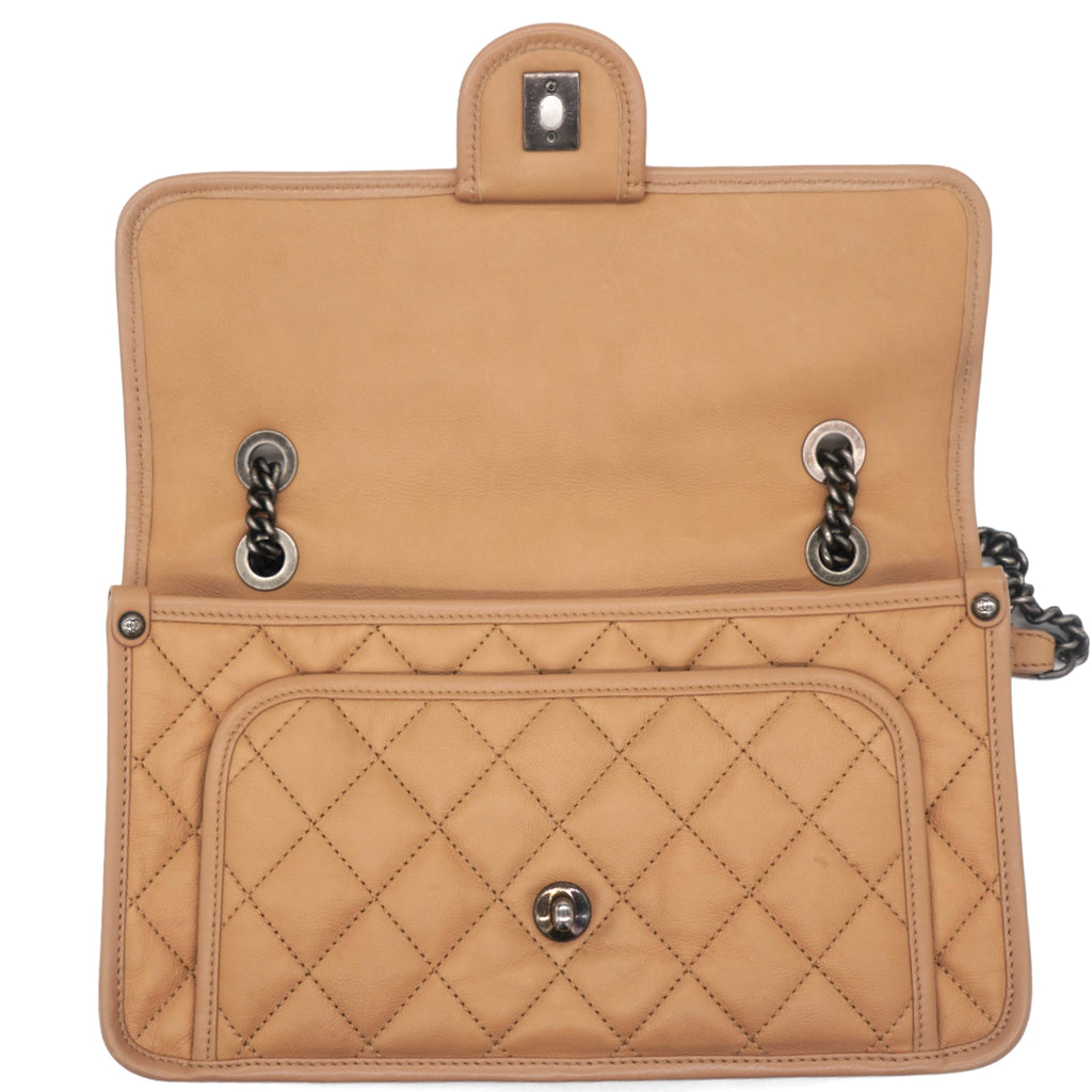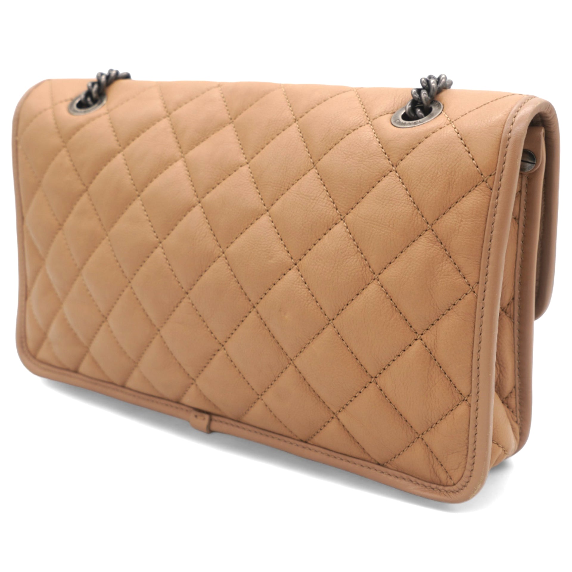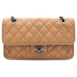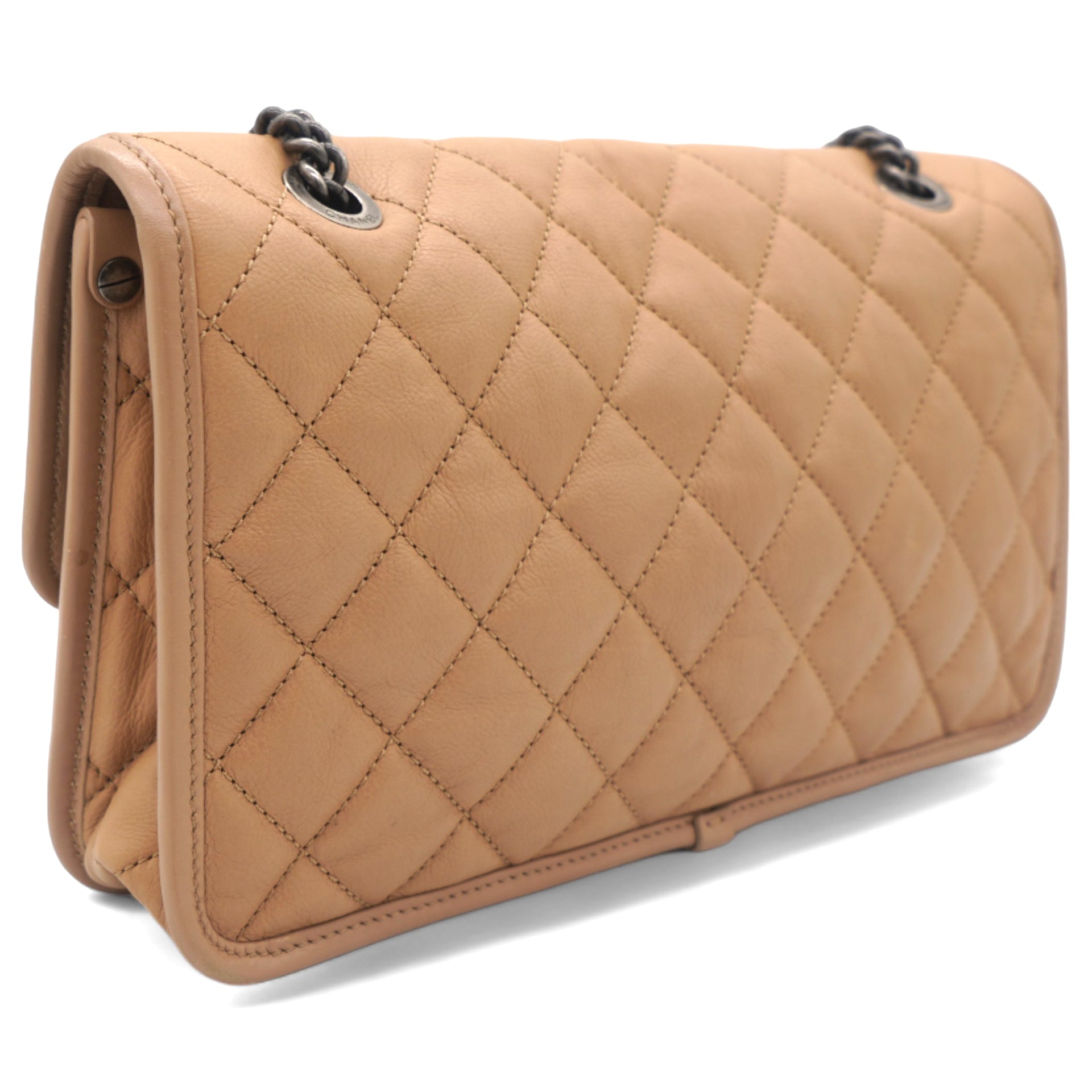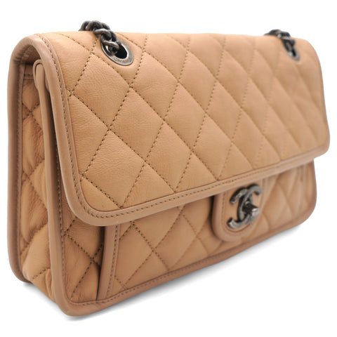 Leather Beige Flap Chain Bag