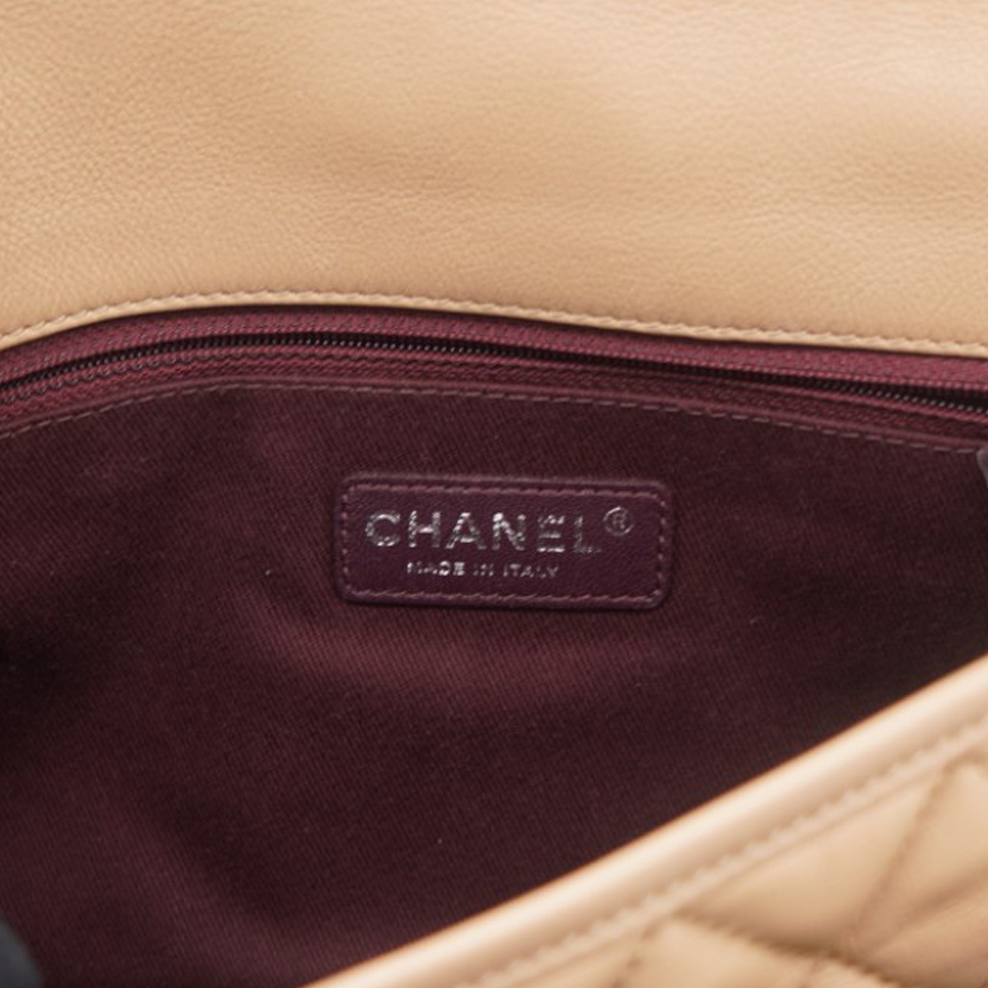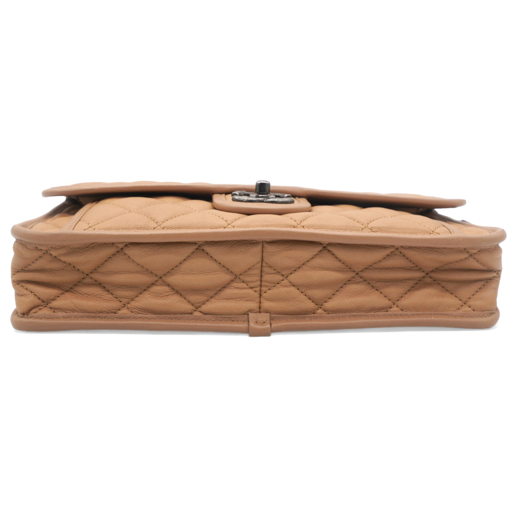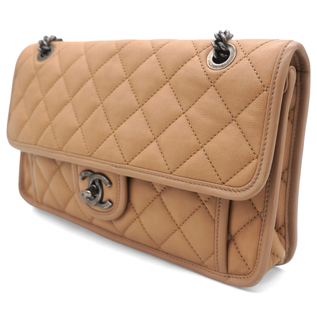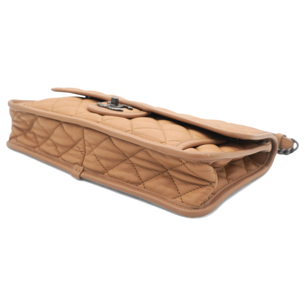 Leather Beige Flap Chain Bag