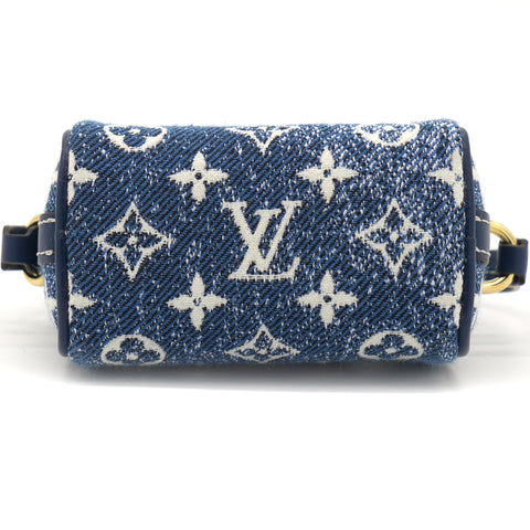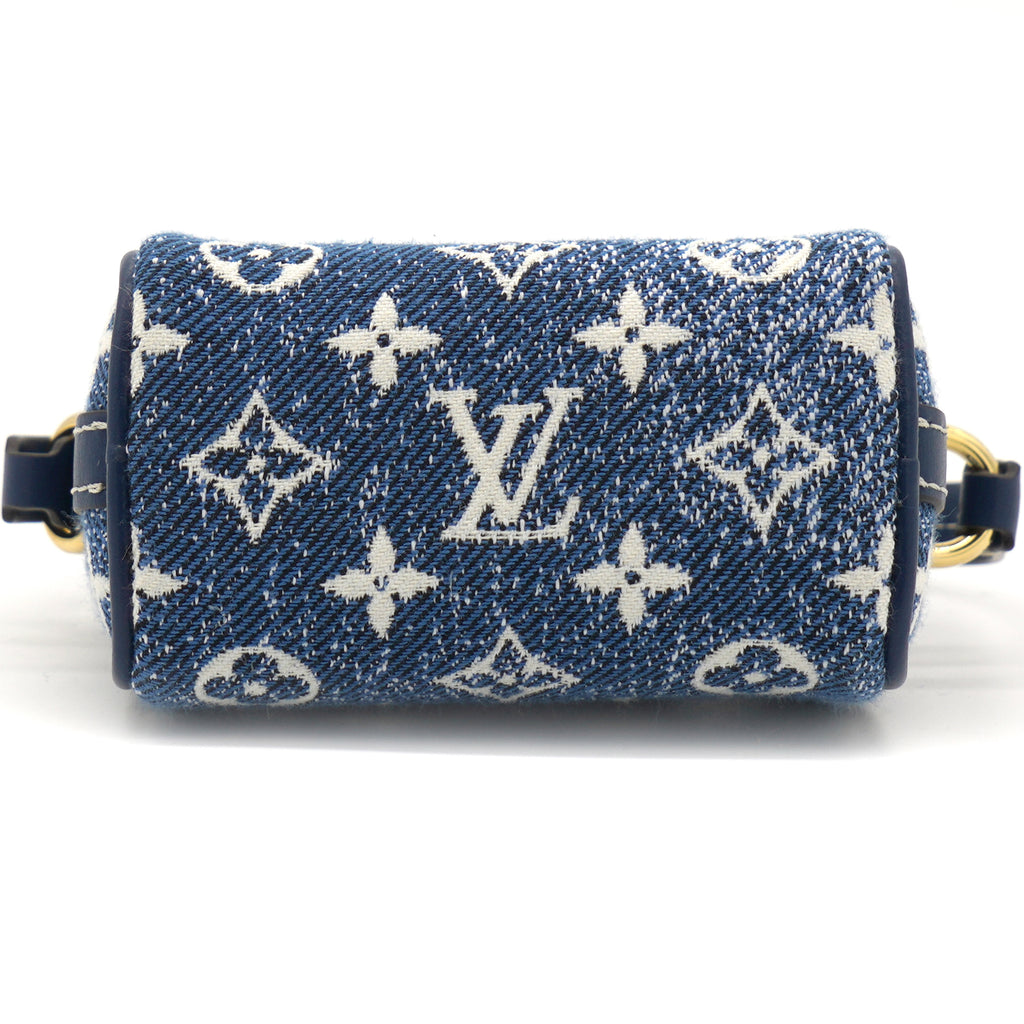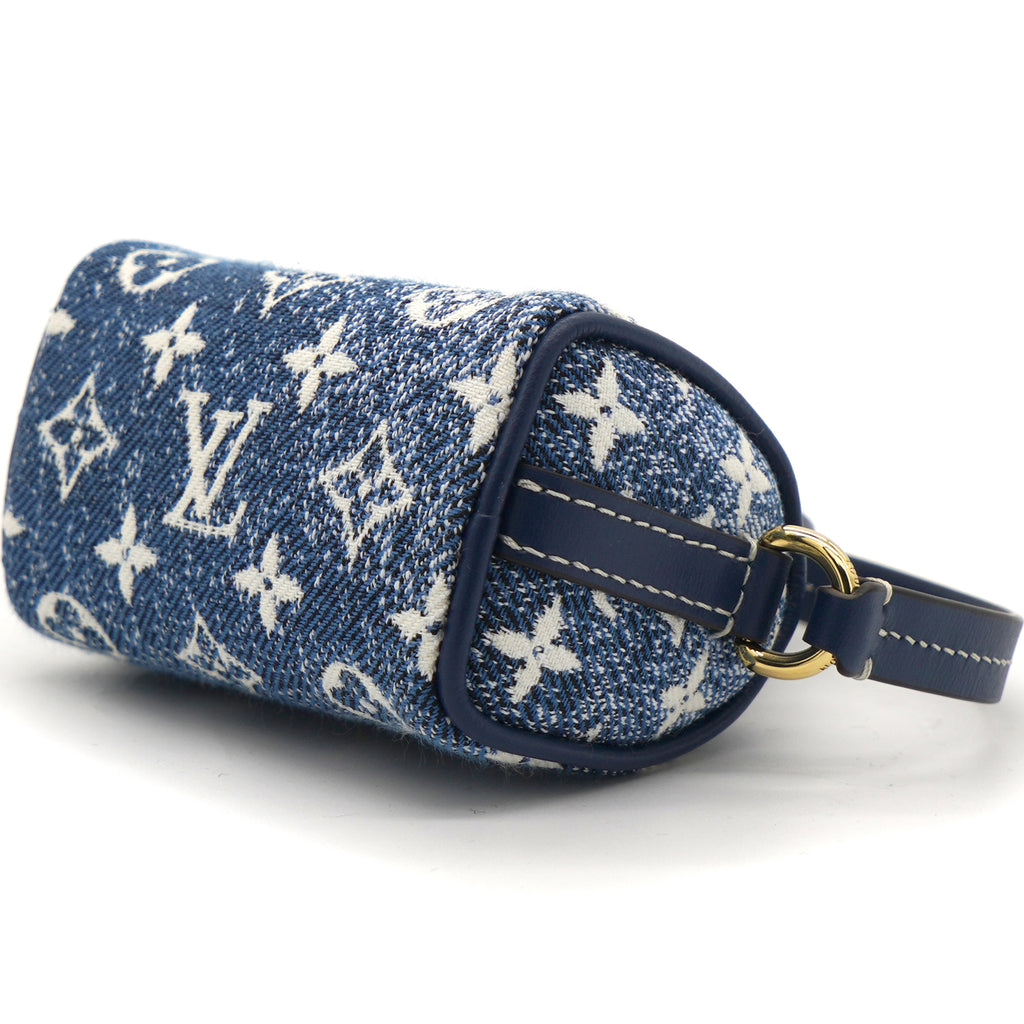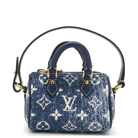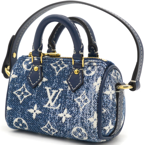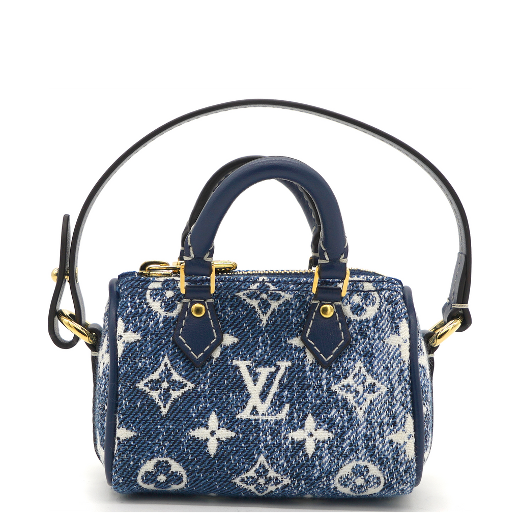 | The Micro Speedy denim bag charm reimagines the House's iconic Speedy bag as a miniature accessory. This mini design is made from pure cotton and features an allover Monogram pattern with a gradient effect. Secure it to bags from the Leather Goods collection using the detachable strap. |