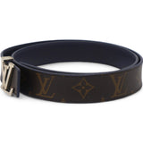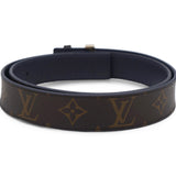 The bold style and stunning detailing of this Louis Vuitton belt make it a fabulous fashion accessory. It has the classic Louis Vuitton monogram on coated canvas and reverses to black leather with a buckle that is a silver Louis Vuitton LV logo.