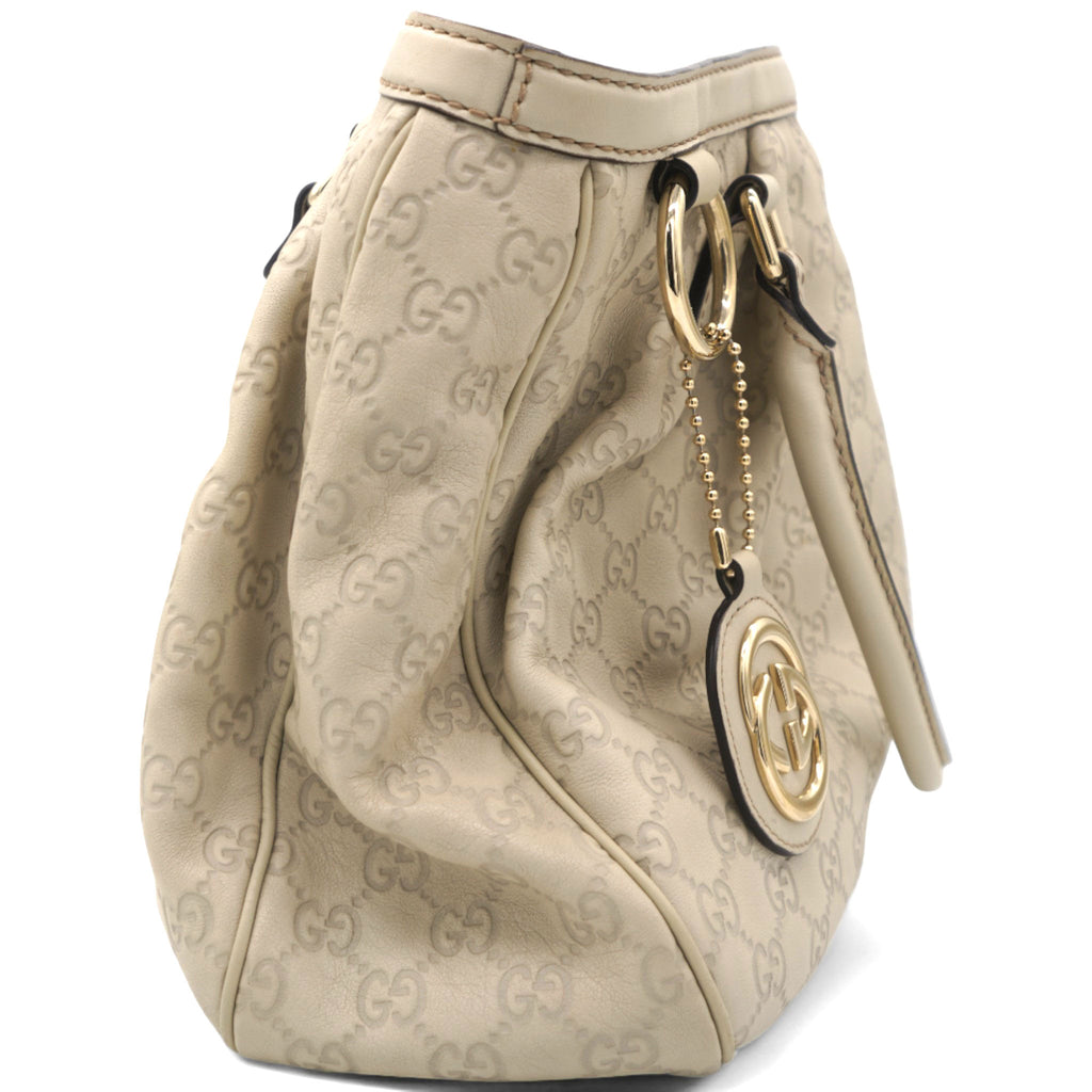 | The Gucci Sukey GG Canvas Tote Bag, hails from Italy and features the iconic GG canvas in a classic beige hue, making it a stylish choice for women. |