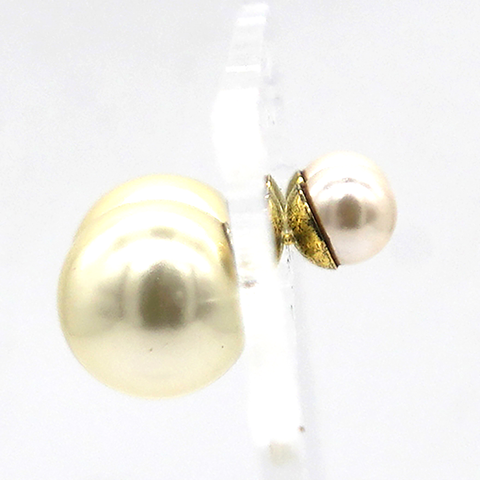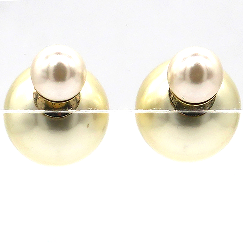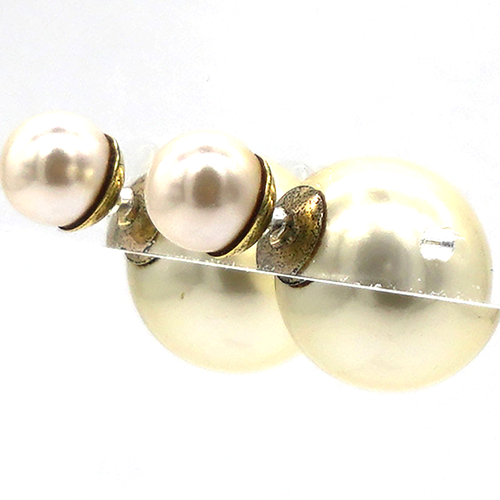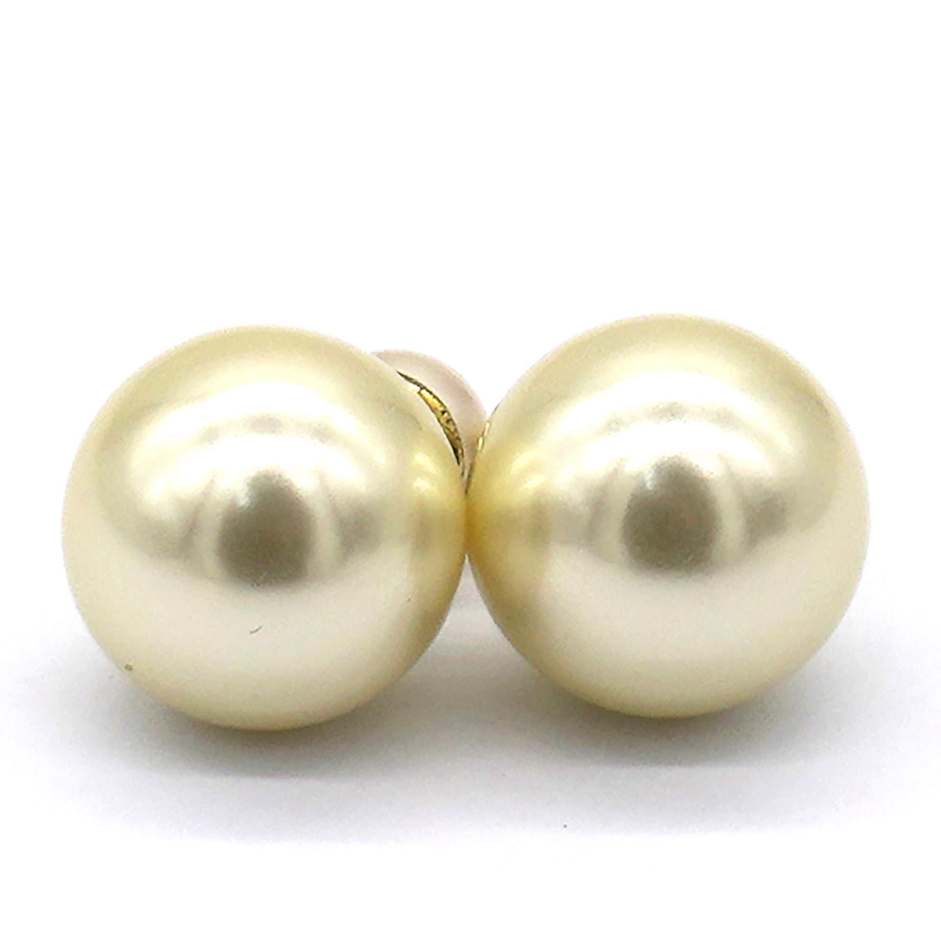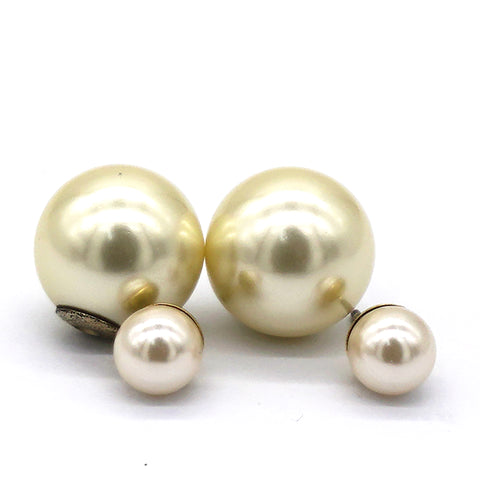 | Get your hands on these gorgeous cream resin beads to create a bold asymmetric effect with these tribal-inspired earrings by Dior. The small pearl rests on the ear while the larger pearl peeps out subtly from behind the lobe. |