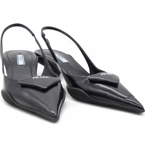 | These elegant slingbacks are expertly crafted from smooth black leather, exuding timeless sophistication. Featuring a comfortable 2.5-inch heel and a durable leather sole, they seamlessly combine style and practicality. The sleek design and classic silhouette make them a versatile choice, perfect for both formal occasions and refined everyday wear. |