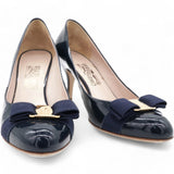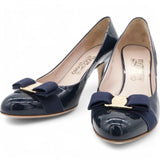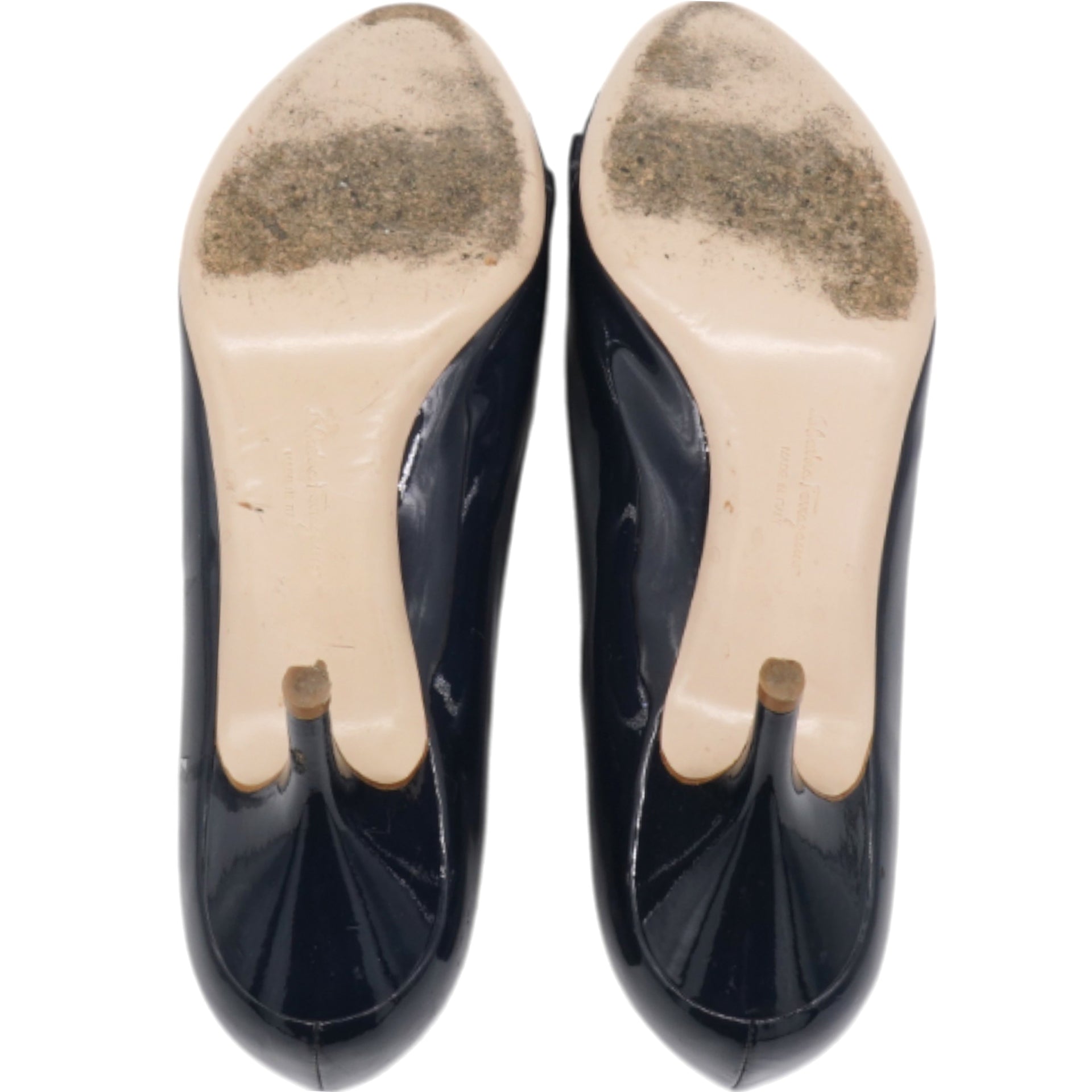 Navy Patent Leather Vara Bow Peep Toe Pumps Size9/40