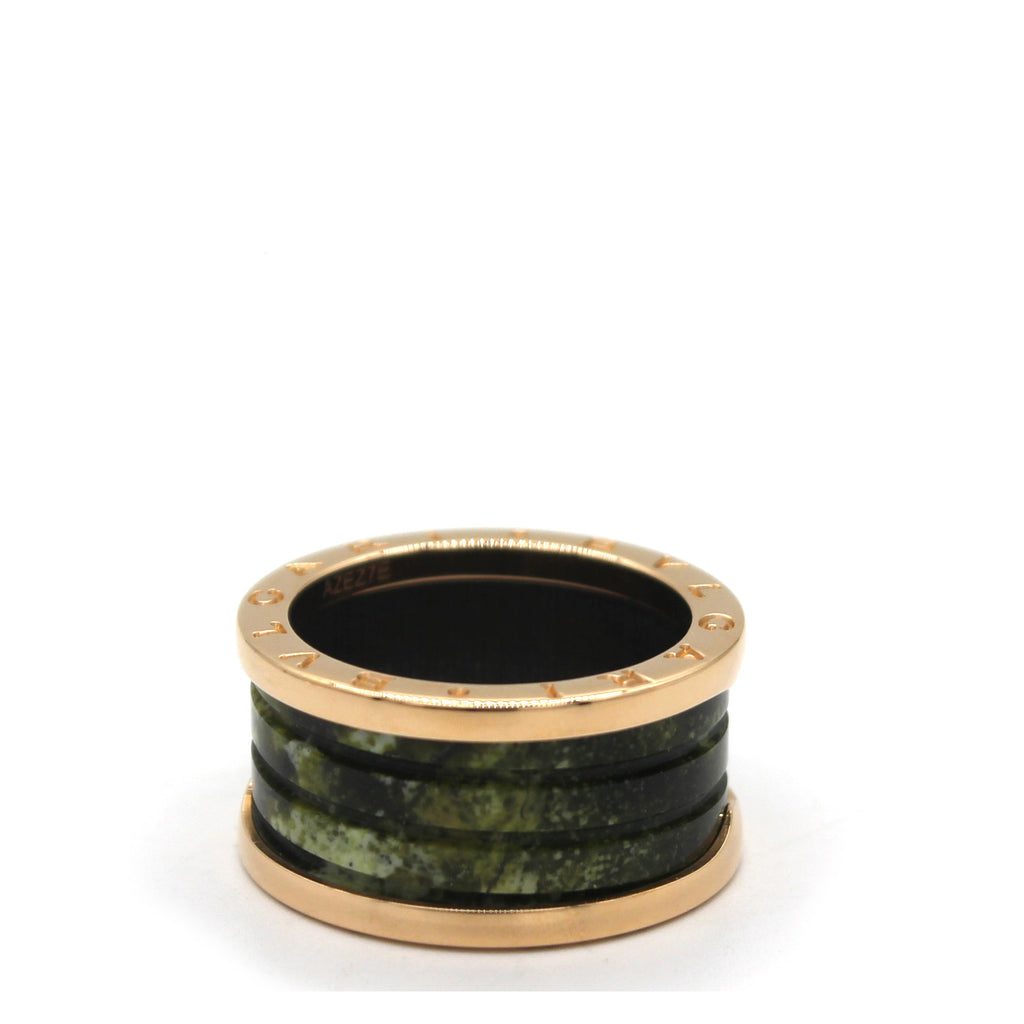 Modern, daring and radiant- this band ring is for the new age woman. The bold architectural design, combining beautiful green marble and an 18k rose gold links is a work of precision.