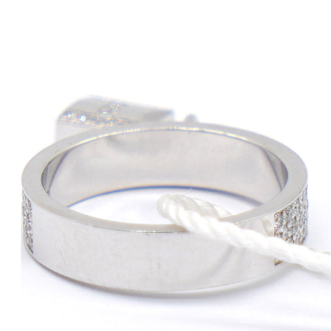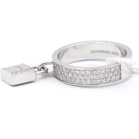 | Inspired by highly coveted Kelly bag, this beautiful white gold ring is elegant, crafted from white gold and adorned with diamonds and Kelly lock charm. |