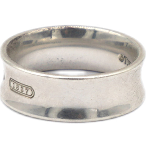 This stunning ring is crafted of lovely sterling silver with a concave exterior and the usual markings of “Tiffany 1837.” This is a marvelous Tiffany & Co classic that will always be a classic only from Tiffany & Co.