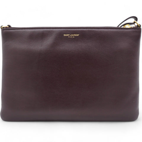 | This stylish shoulder bag is crafted of luxurious smooth calfskin in dark red. The bag features a long leather shoulder strap and gold hardware. The top unzips with a tassel zipper pull to a black fabric interior with card slots and patch pockets. |