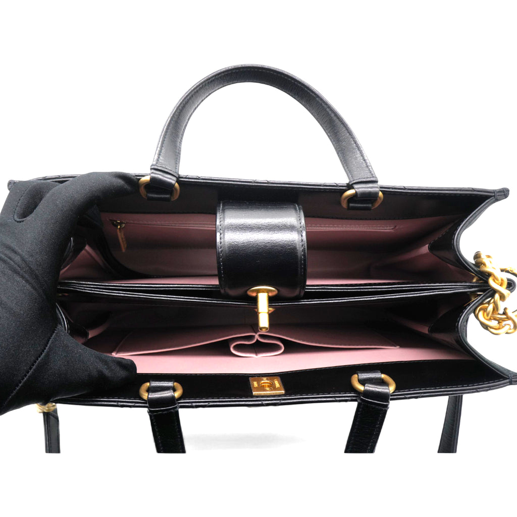 Black Leather Straight-Lined Shopper Tote