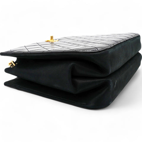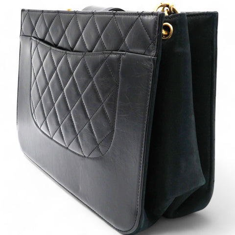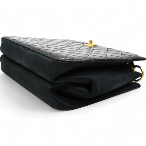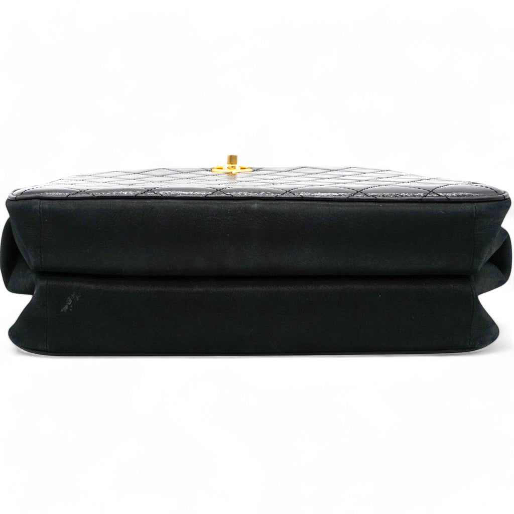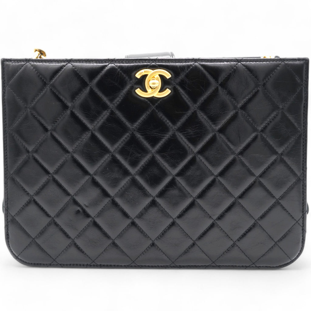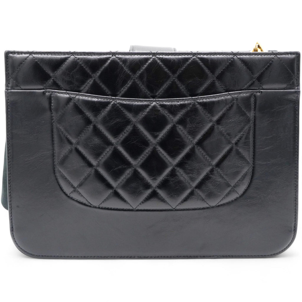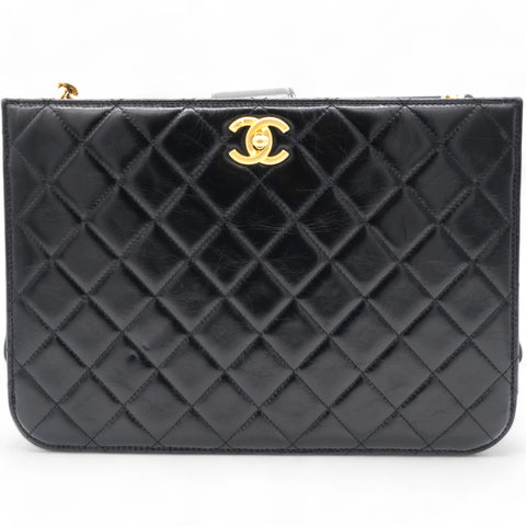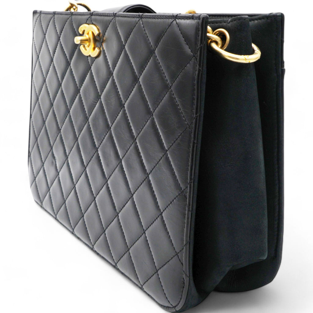| Perfect for work or travel, this Chanel tote is made of quilted leather to be classy and durable. It has top handles, a shoulder strap, the CC logo, and a spacious lined interior. |