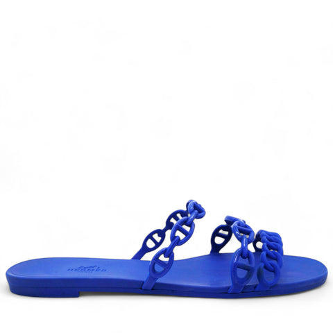 | These stylish sandals are crafted of leather in brown. They feature a toe strap across-over large Hermes H and an adjustable strap. |