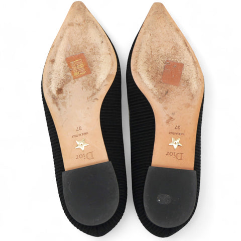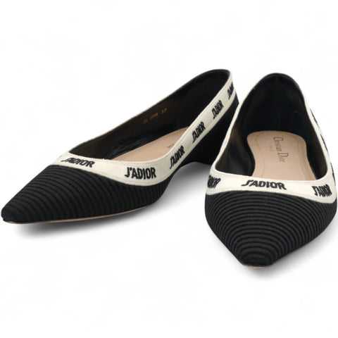 | These chic flats are crafted from refined black fabric, offering a sleek and versatile finish. The design is highlighted by the signature embroidered J’ADIOR logo ribbon, adding a touch of recognizable elegance, while the pointed toe silhouette lends a graceful and feminine charm. Perfect for elevating everyday ensembles, they embody a balance of modern sophistication and timeless style. |