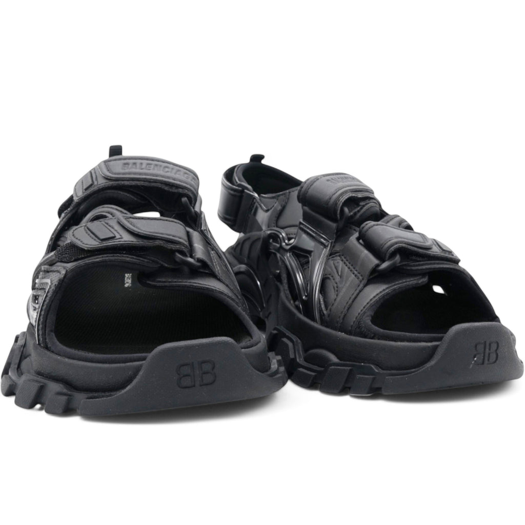 | These sporty sandals feature velcro straps with leather and rubber trim on the exterior and rugged black rubber soles. |