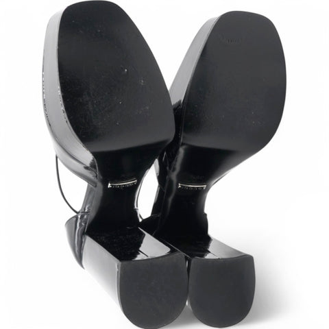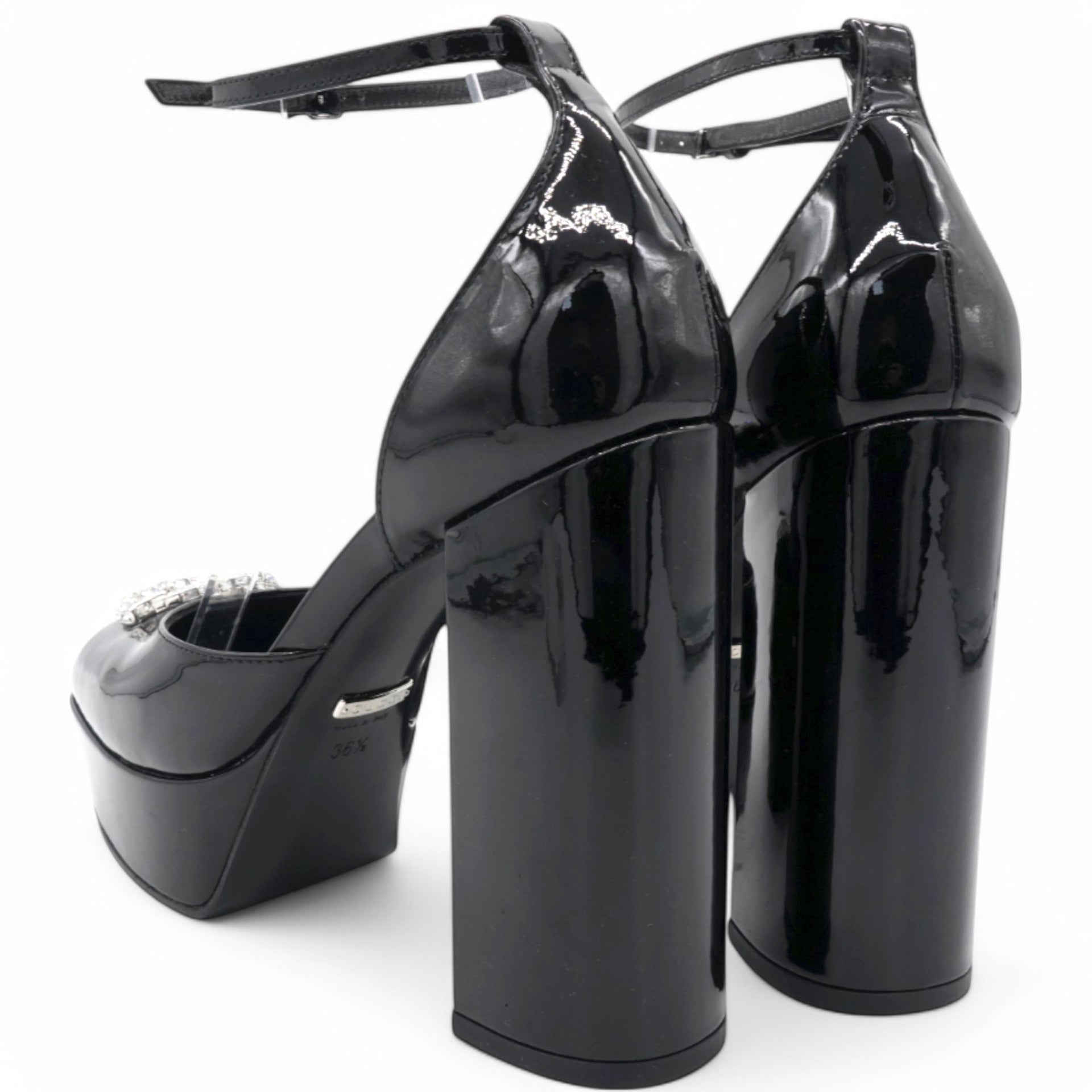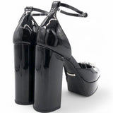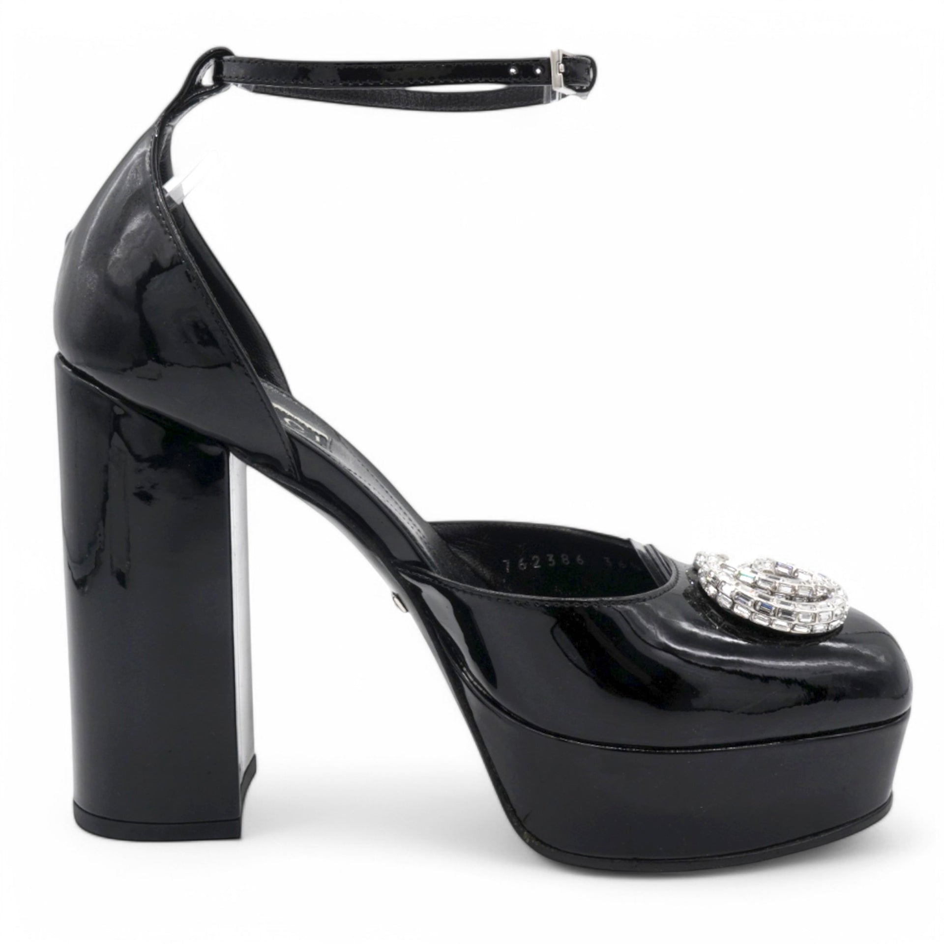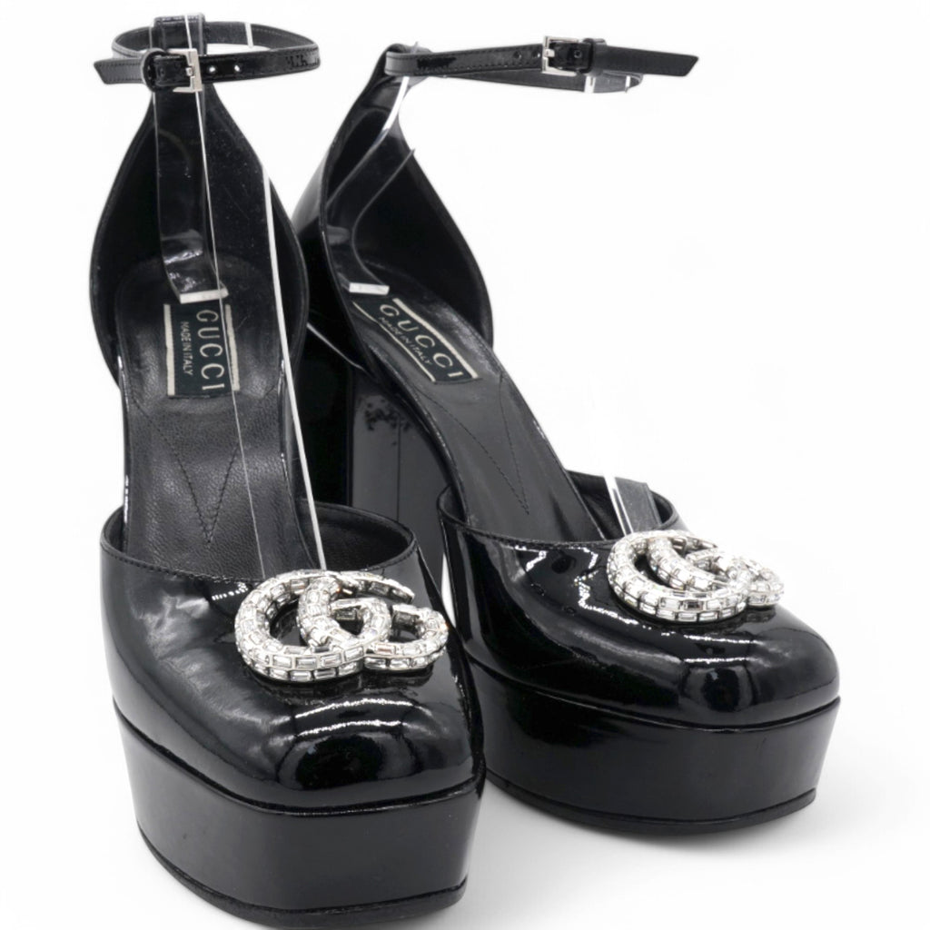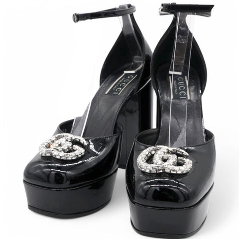 Patent Crystal Double G Platform Pumps Black Size36.5