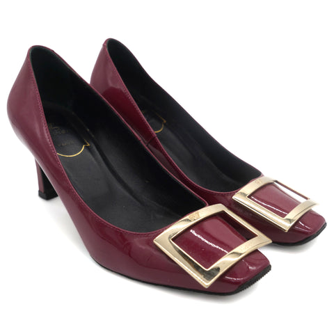 | These Trompette pumps from Roger Vivier prove that fashion and comfort can go hand in hand too! The red pumps are crafted from luxe patent leather and feature square toes with buckles on the vamps. They flaunt comfortable leather-lined insoles, gold-tone hardware, and 7 cm heels. Wear them for your evening outings. |