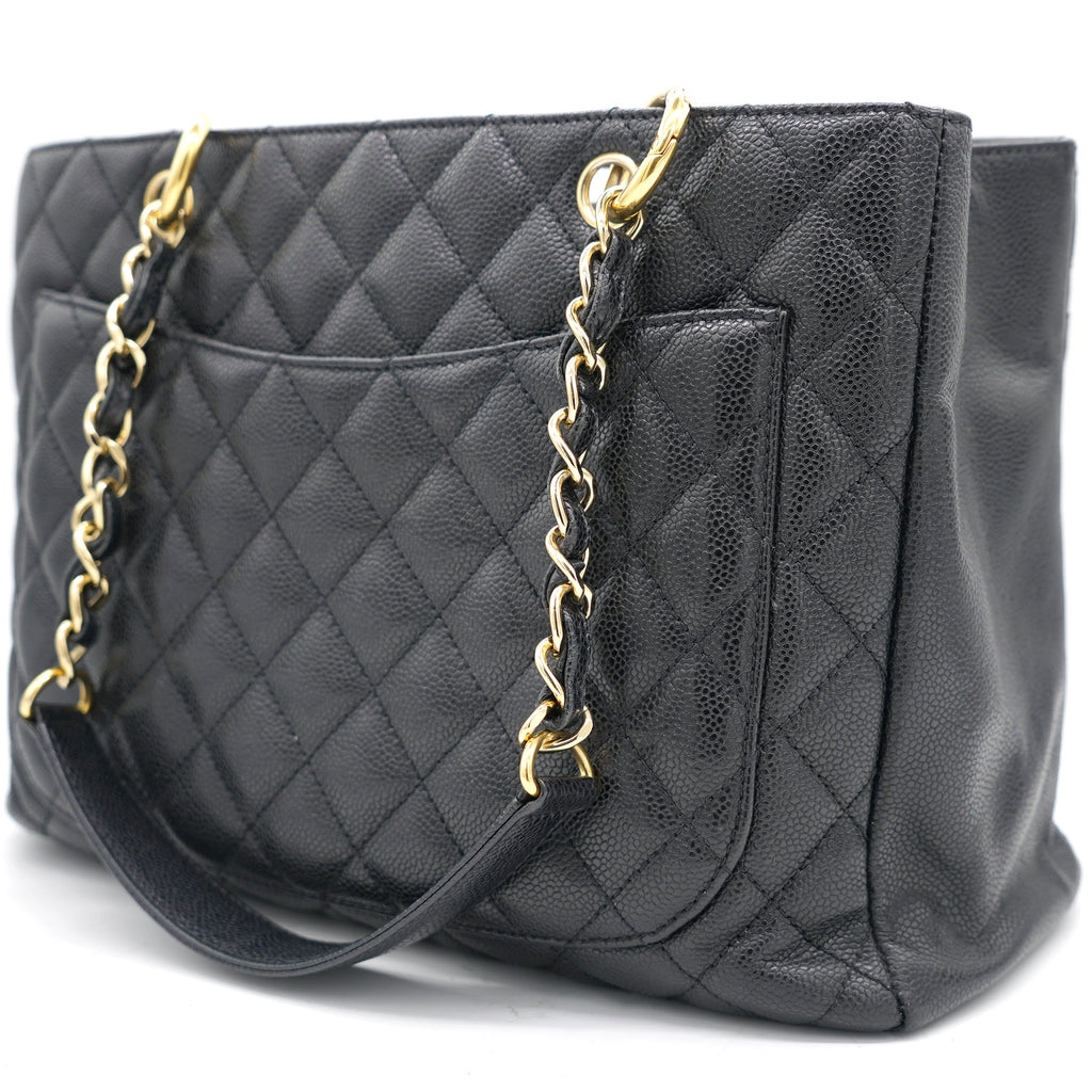Beige Quilted Caviar Leather Grand Shopper GST Tote