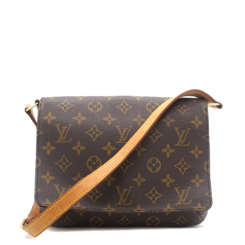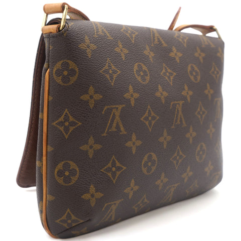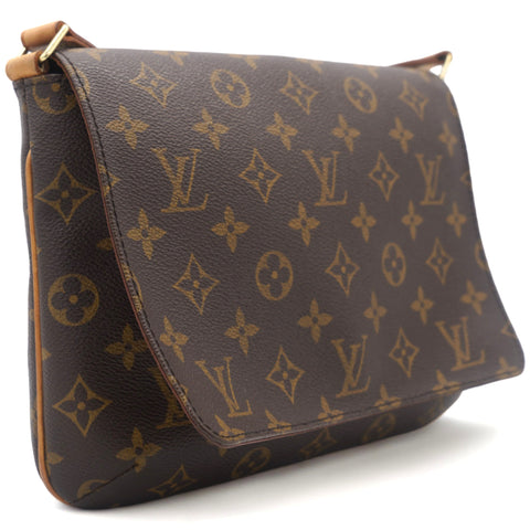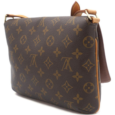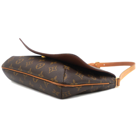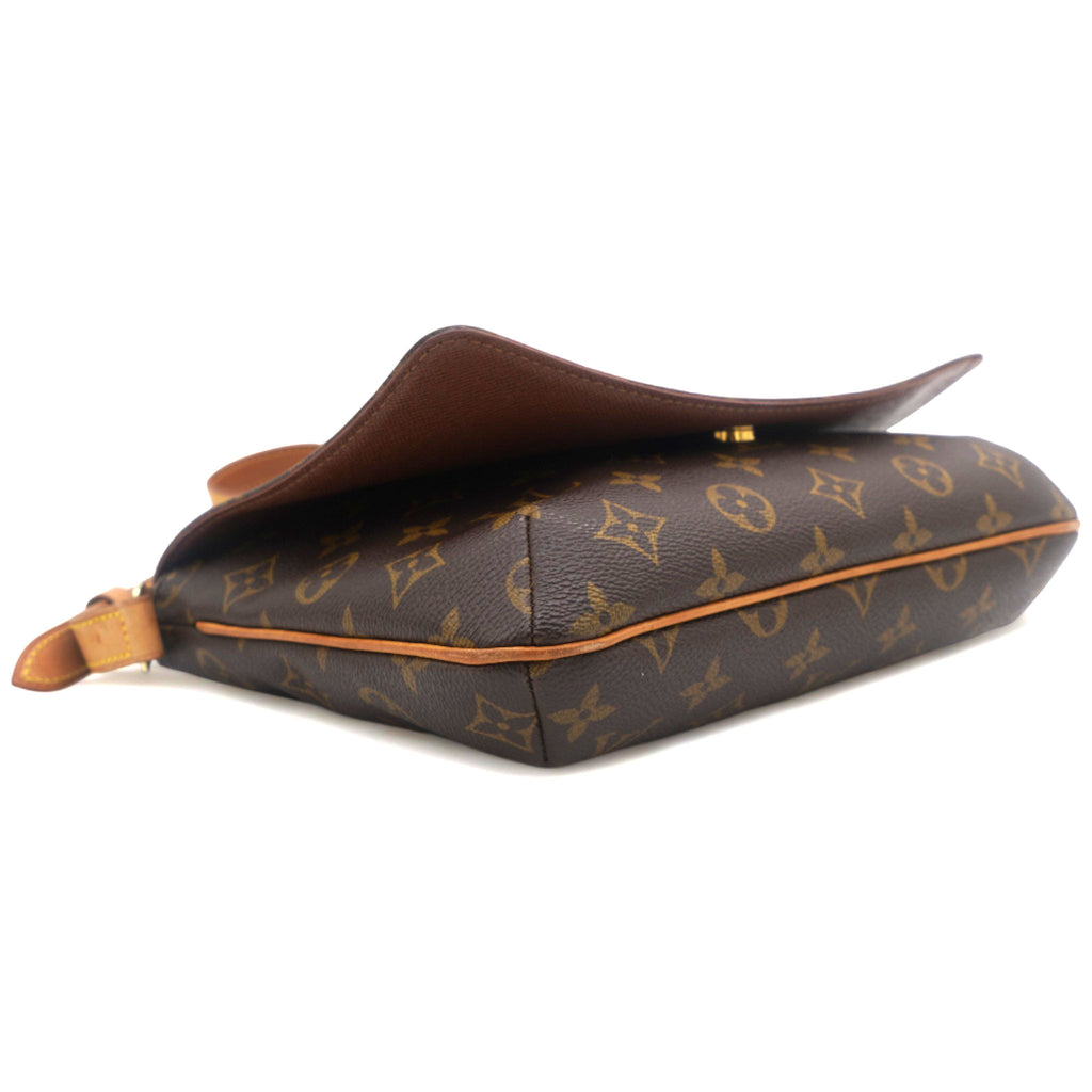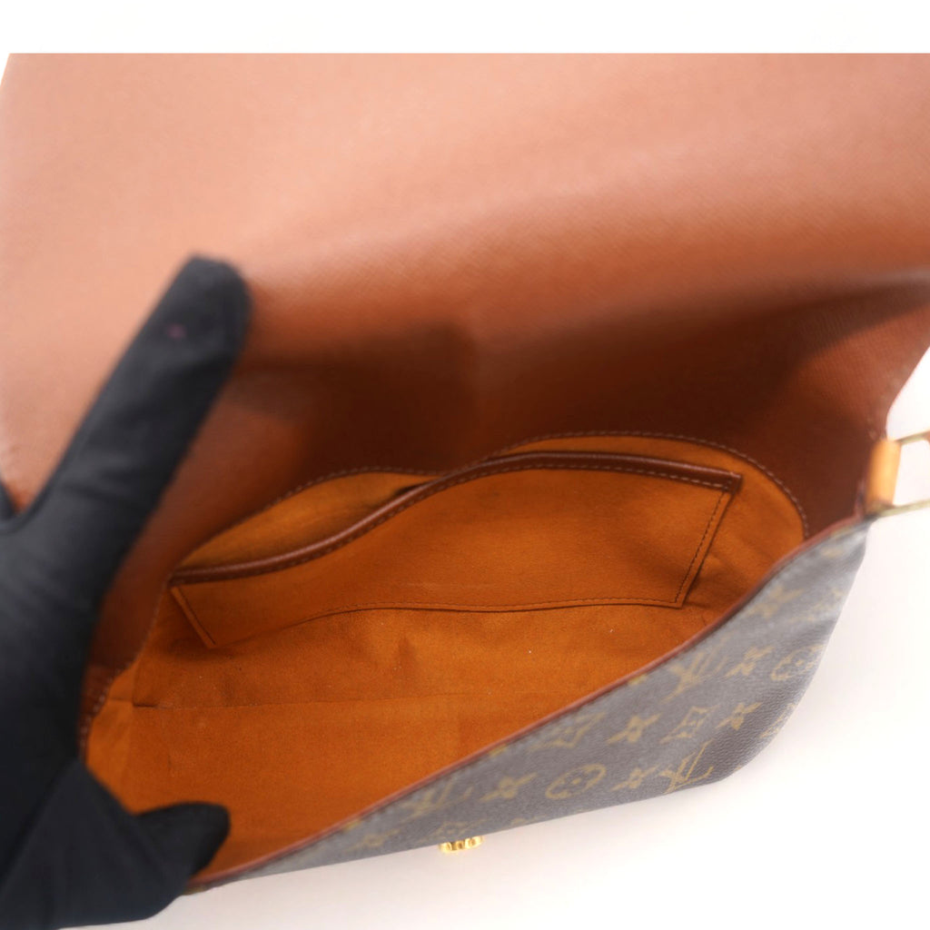 | This chic shoulder bag is finely crafted of Louis Vuitton monogram on coated canvas. The bag features a vachetta cowhide leather shoulder strap with polished brass hardware and a frontal flap. This flap opens to a saffron alcantara microfiber interior with a patch pocket. |