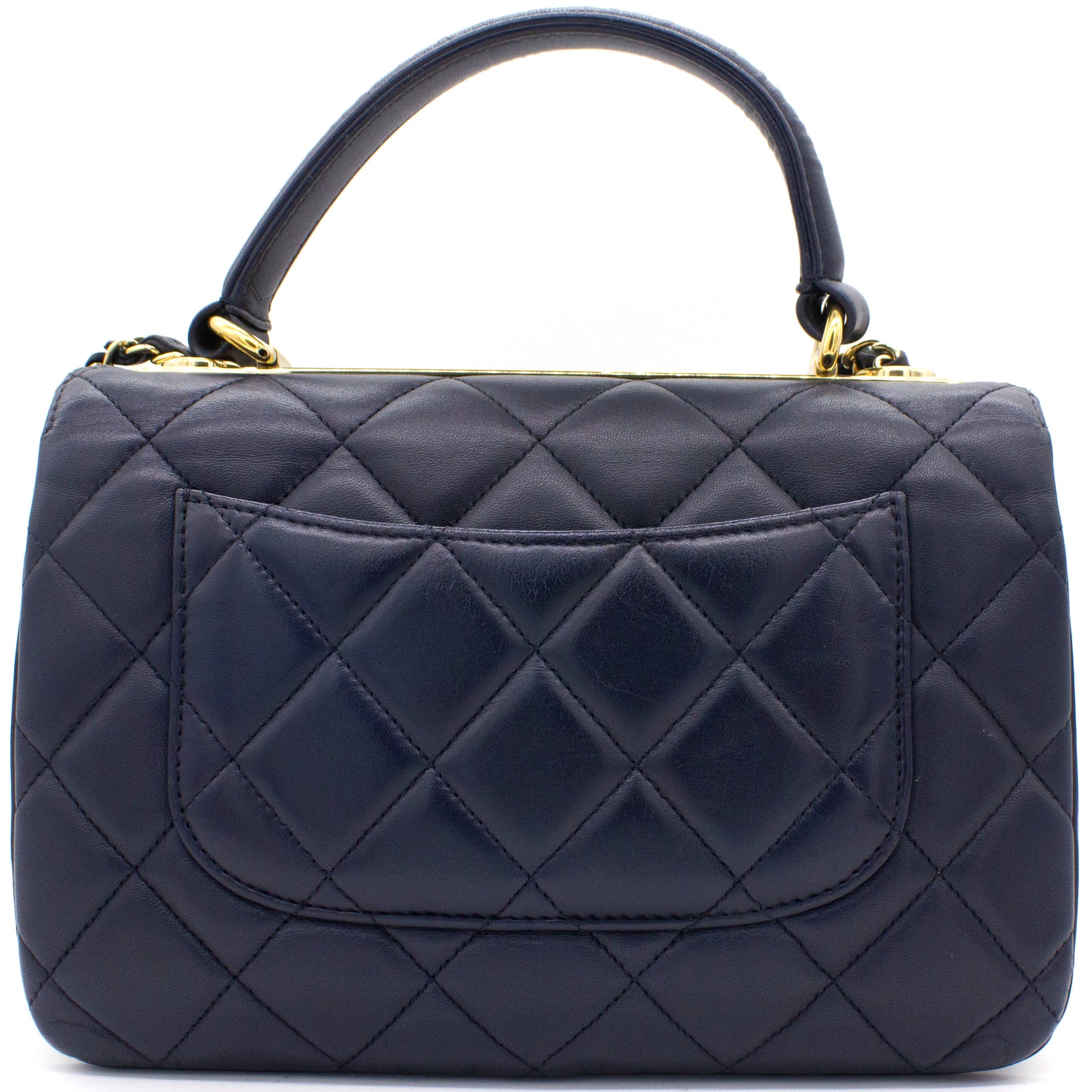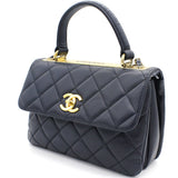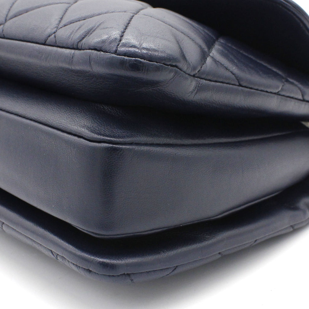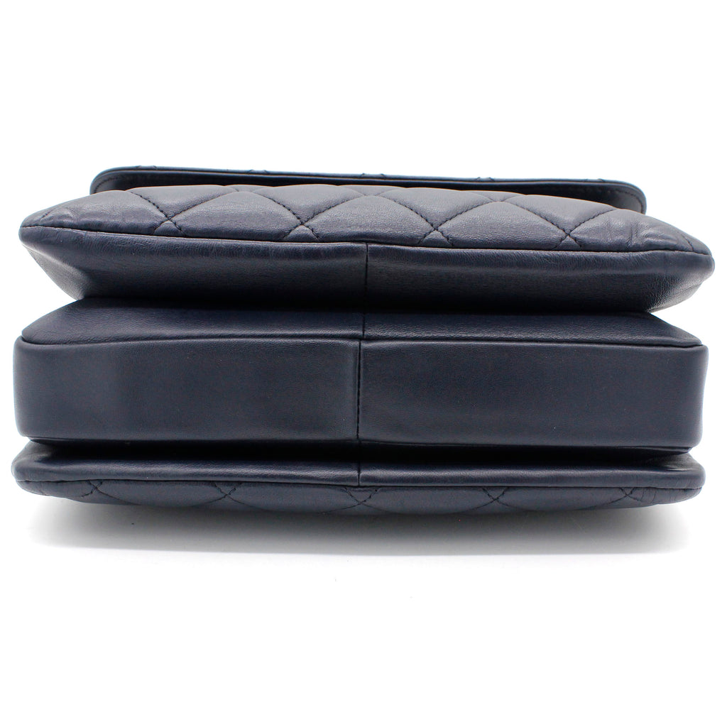 Navy Blue Quilted Leather Small Trendy CC Flap Shoulder Bag