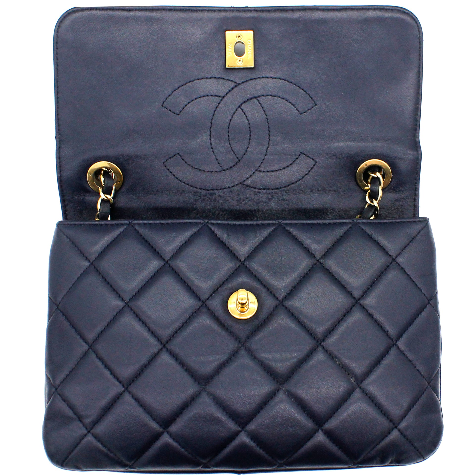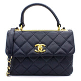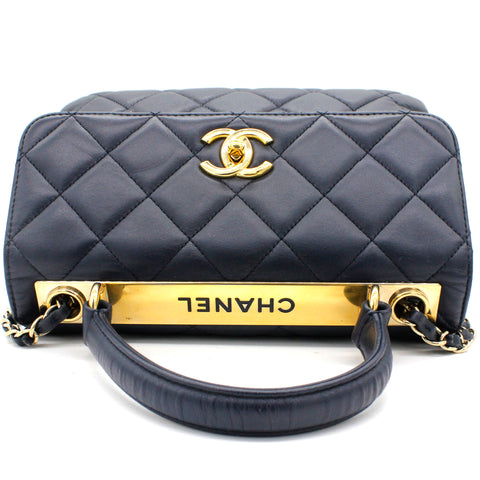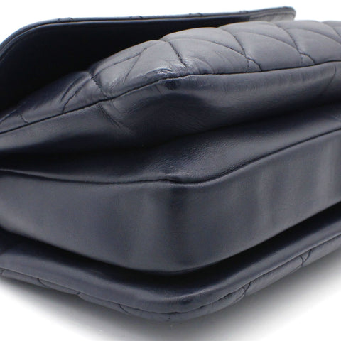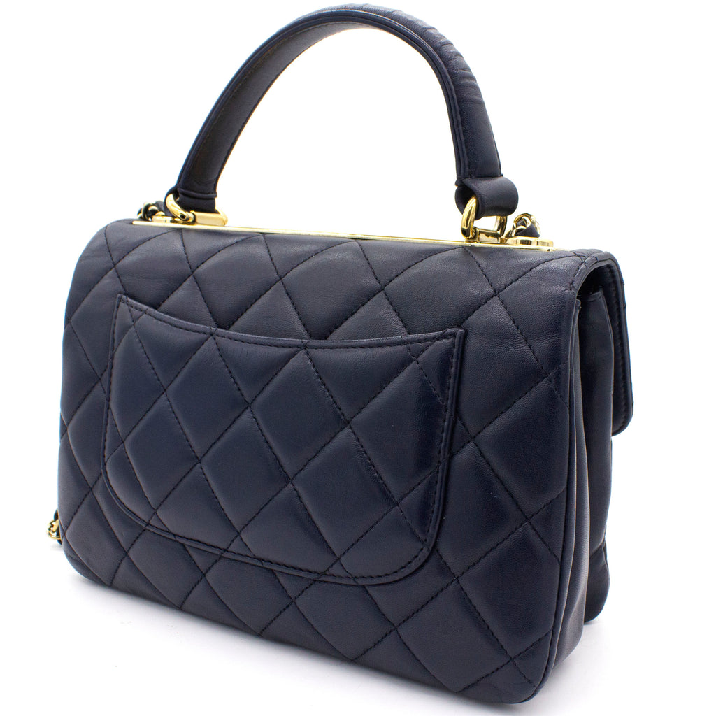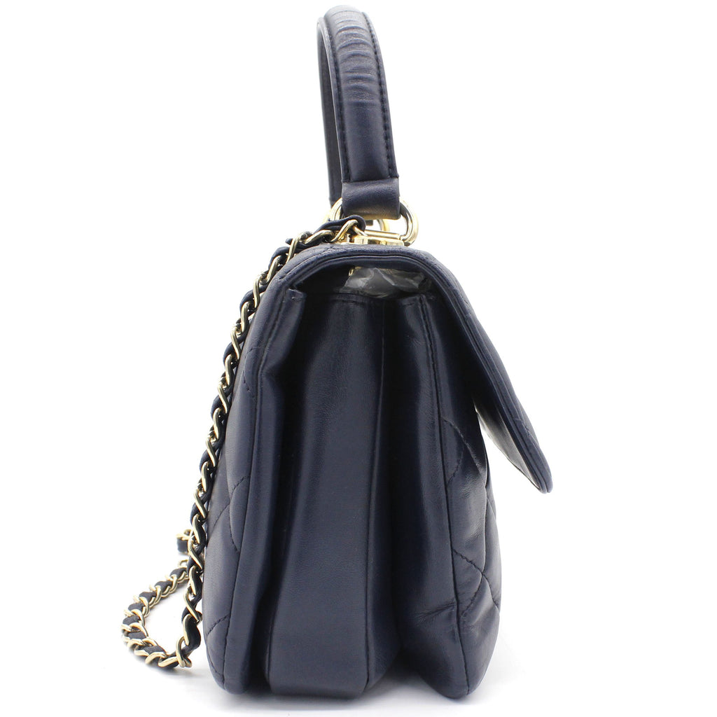Navy Blue Quilted Leather Small Trendy CC Flap Shoulder Bag