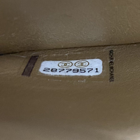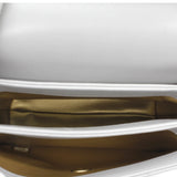 Interior Material:   Gold leather lining with dual compartments and CC turn-lock closure at front flap.