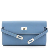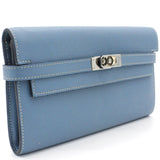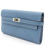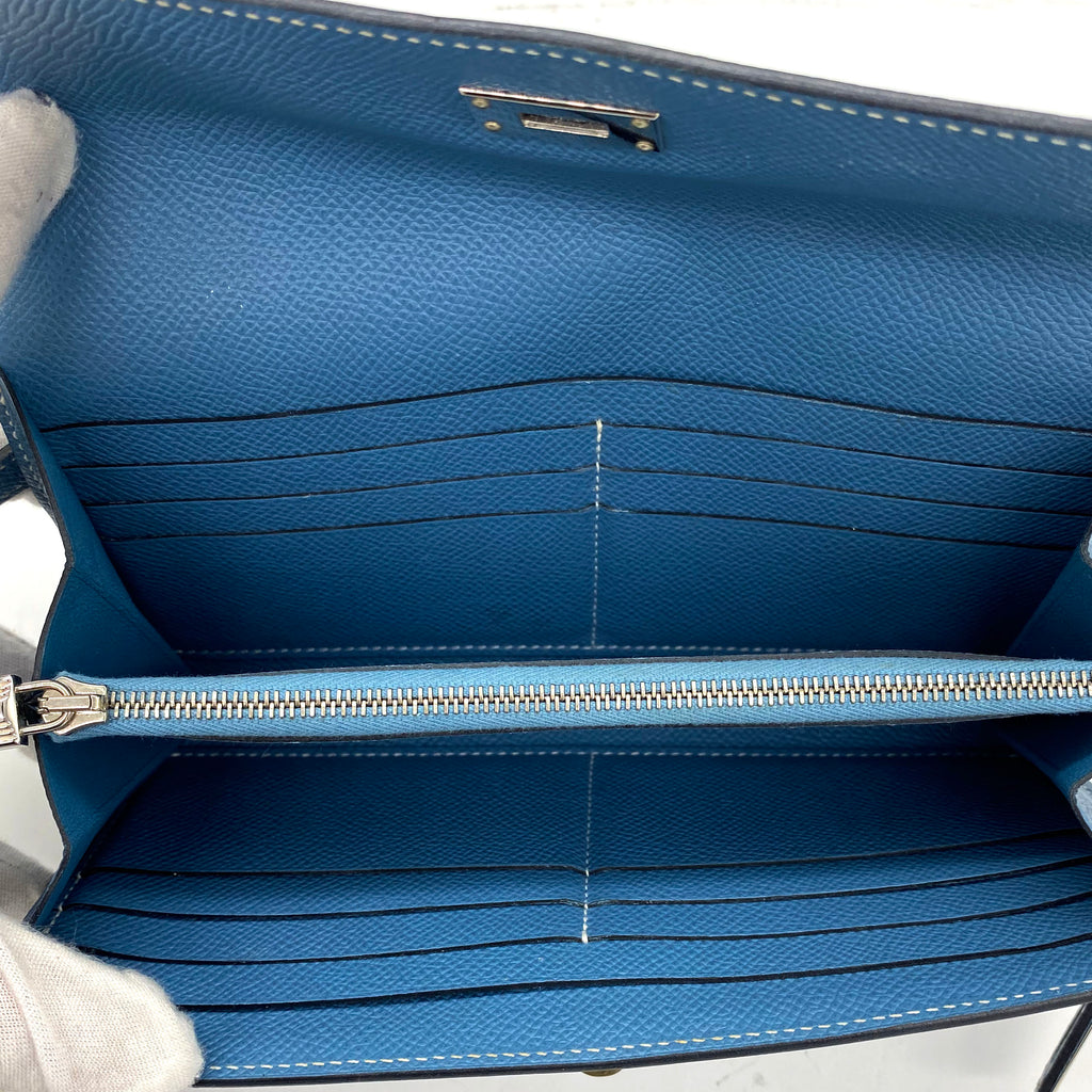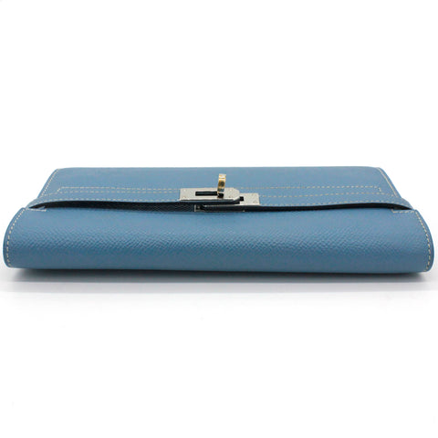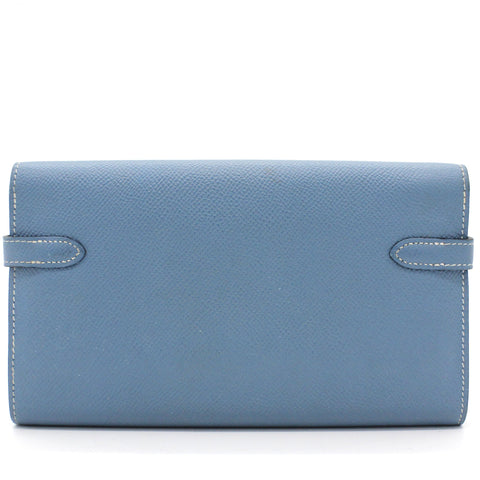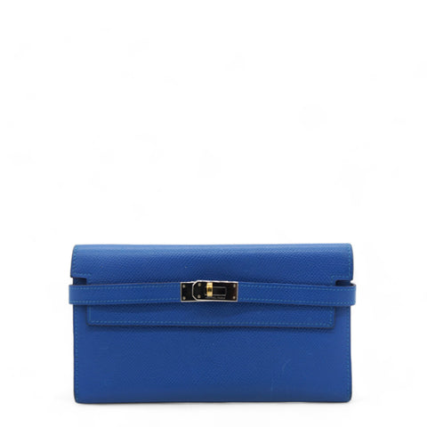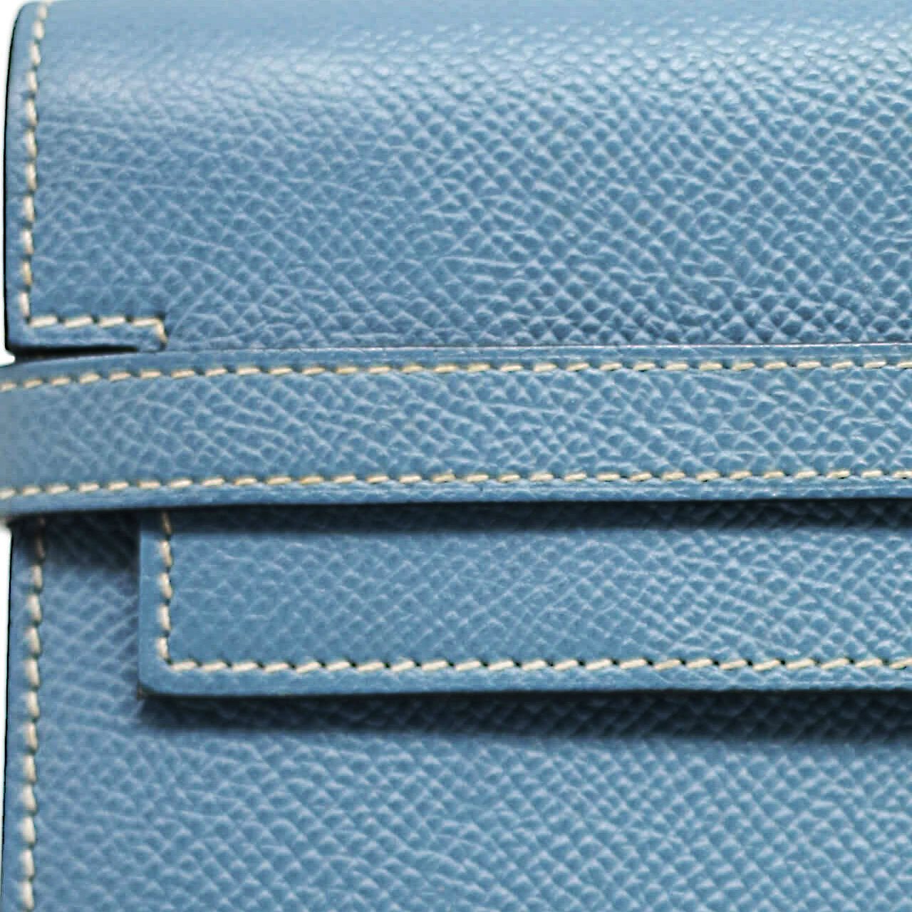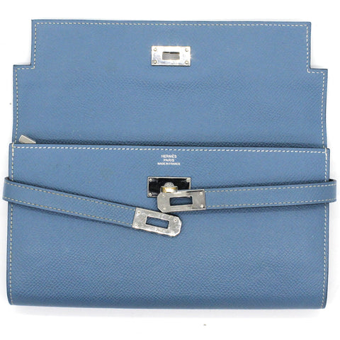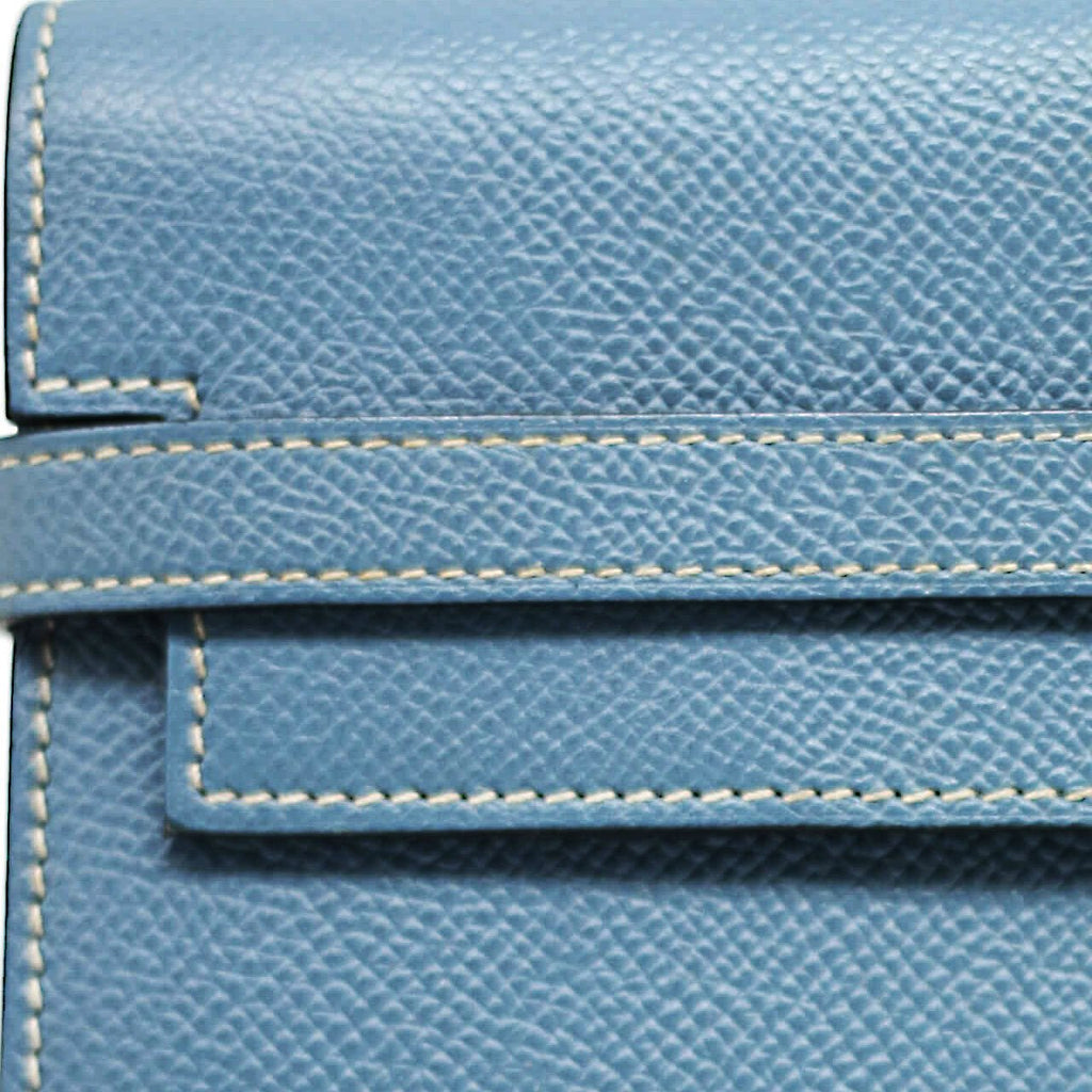 | This piece from Hermes is an instant classic. It features a design that mimics Kelly bags in durable Hermes Epsom Leather and has plenty of room for all of your cards and papers. This wallet is super chic and is the perfect addition to your Hermes collection. Featuring the classic Hermes turn-clasp and a small lock zipper pull inside, this piece is a must-have! |