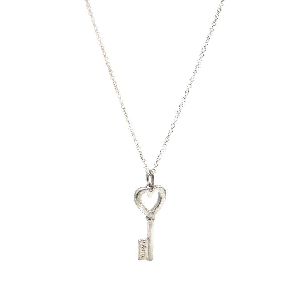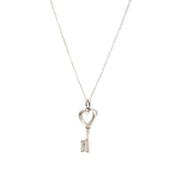 | This necklace features a sterling silver heart shaped key pendant on a sterling silver chain. |
