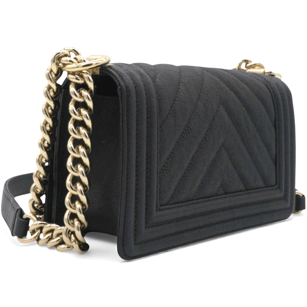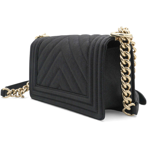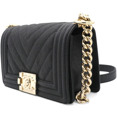 Small Caviar Chevron Leboy Black