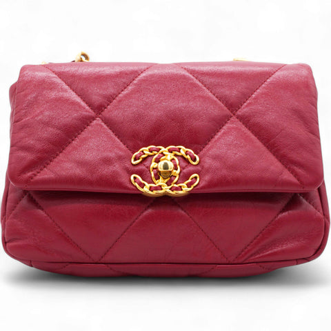 Lambskin Quilted Medium Chanel 19 Flap Red