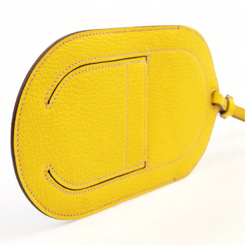 | Crafted from the luxurious mysore goat leather in jaune de naples with contrast pink stitching, a must have accessory for Hermes lovers. |