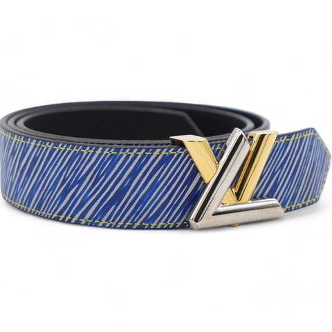 | This stylish bracelet is crafted of Louis Vuitton signature textured epi leather in blue and white. The belt is adorned with a silver and gold LOUIS VUITTON LV logo turn lock. This is a splendid cuff bracelet with the iconic style of Louis Vuitton! |