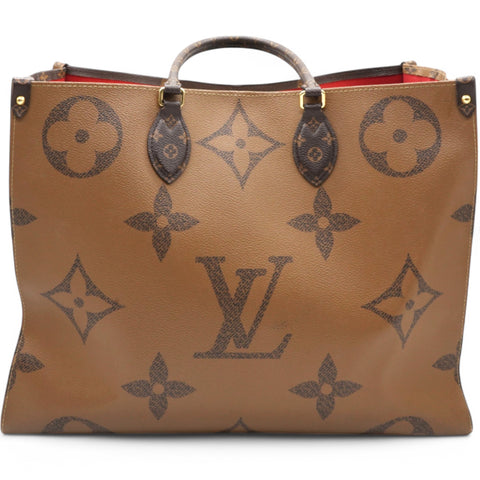 | This limited edition tote features oversized and smaller versions of the classic Louis Vuitton monogram printed in brown on coated canvas in beige. The bag features rolled top handles and long shoulder straps that can be tucked away inside the bag, accented with polished brass hardware. The top is open to a spacious red fabric interior with zipper and patch pockets. |