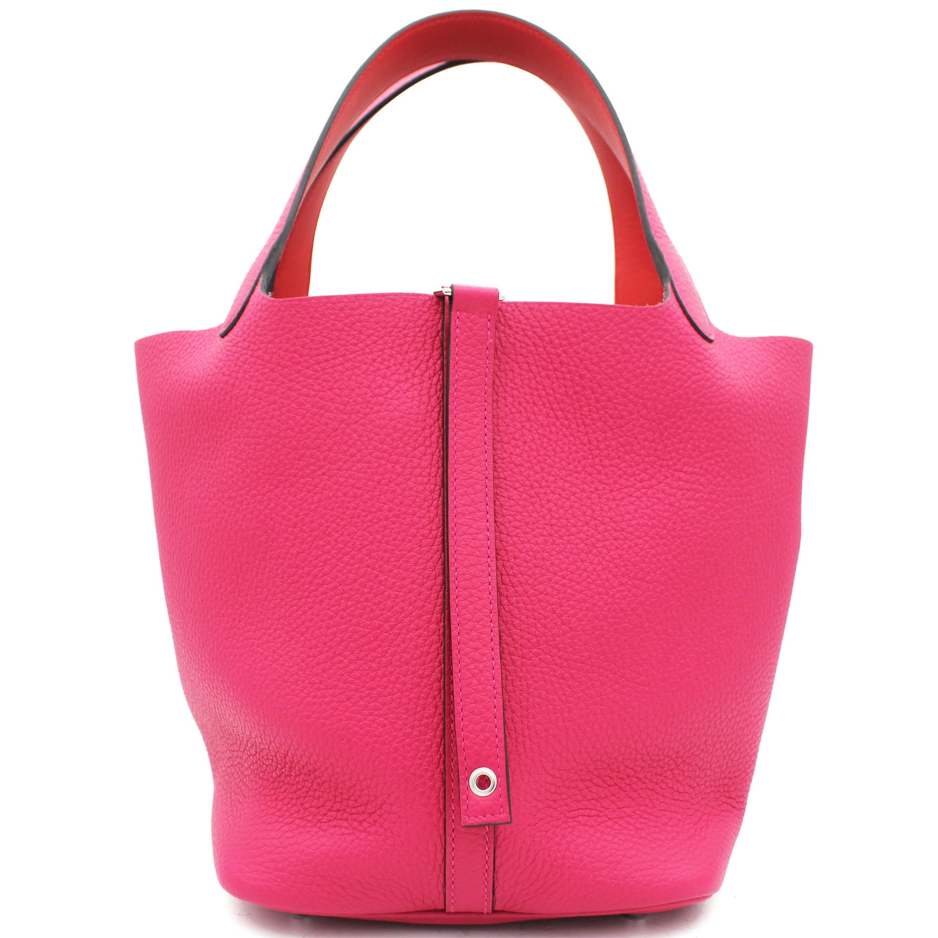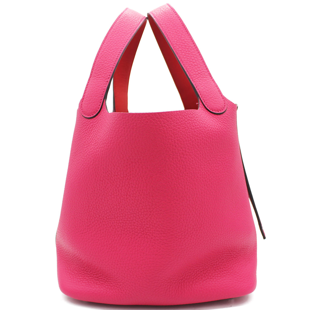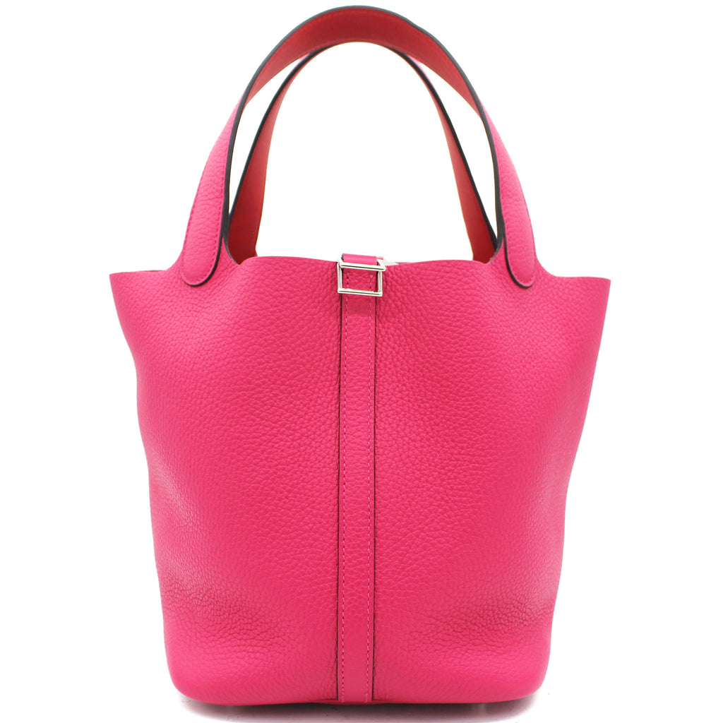 Wonderfully crafted from quality leather, this Picotin from Hermes is a creation for people who love a perfect blend of luxury and style. It comes in pink and it sits in a relaxed shape with two handles and a spacious interior. Armed with protective metal feet as a finishing touch, this bag is ideal for everyday usage.