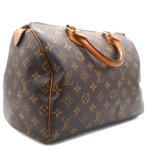 | This Louis Vuitton Speedy 30 handbag, crafted in brown canvas, originates from France and carries the serial number TH0042. It is designed for female fashion enthusiasts. |