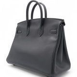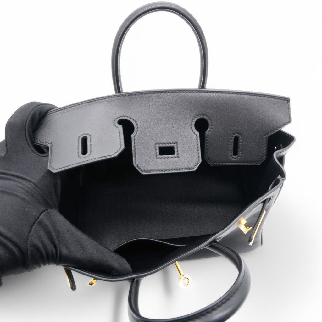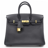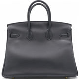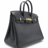 This classic handbag is beautifully crafted of supple swift leather in black. The bag features rolled leather top handles, a frontal flap and strap closure and gold plated hardware including a turn lock, a padlock and keys in the hanging leather clochette. This opens to a matte leather interior with zipper and patch pockets.