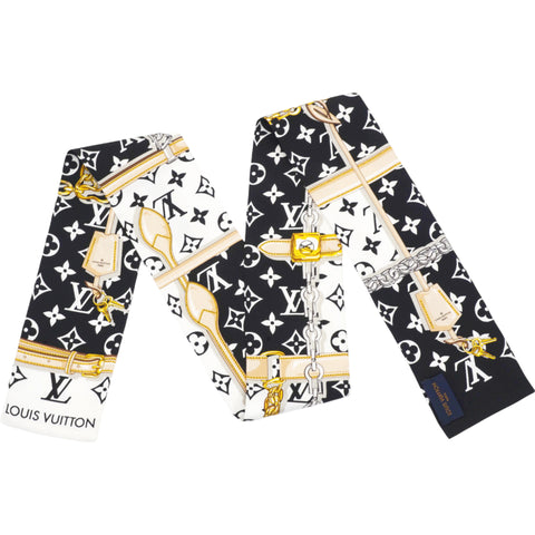 | For a touch of class and sophistication, this beautiful bandeau scarf is the perfect accessory for every wardrobe. Made from 100% silk, the creation is tinted in black. It also features the label's iconic monogram and 'Louis Vuitton' lettering. To be tied around your wrist, head, or handbags, this bandeau scarf is a versatile accessory to own. |