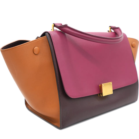 Tri-Color Leather and Suede Small Trapeze Top Handle Bag