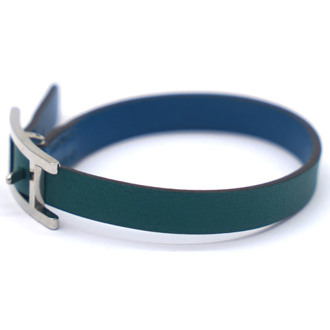 | Reversible bracelet in Swift and Epsom calfskin with brushed gold-plated Hapi closure. Contrary to appearances, Behapi is actually a code. "Be" indicates that the leather strap is made from two materials and therefore reversible, and "hapi" are the first letters of the name and surname of its creator: the well-known French designer Pierre Hardy. |