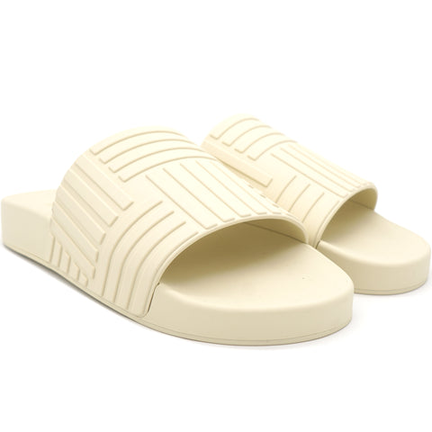 | Bottega Veneta's 'Carpet' slides are more than a cut above the rest. They're made from smooth rubber that's embossed in tribute to the house's signature weaving techniques and set on gripped outsoles. Wear yours with both bare feet and socks to maximise the styling potential. |