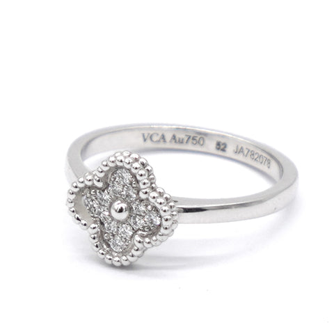 18K White Gold Diamond Sweet Alhambra Ring 52